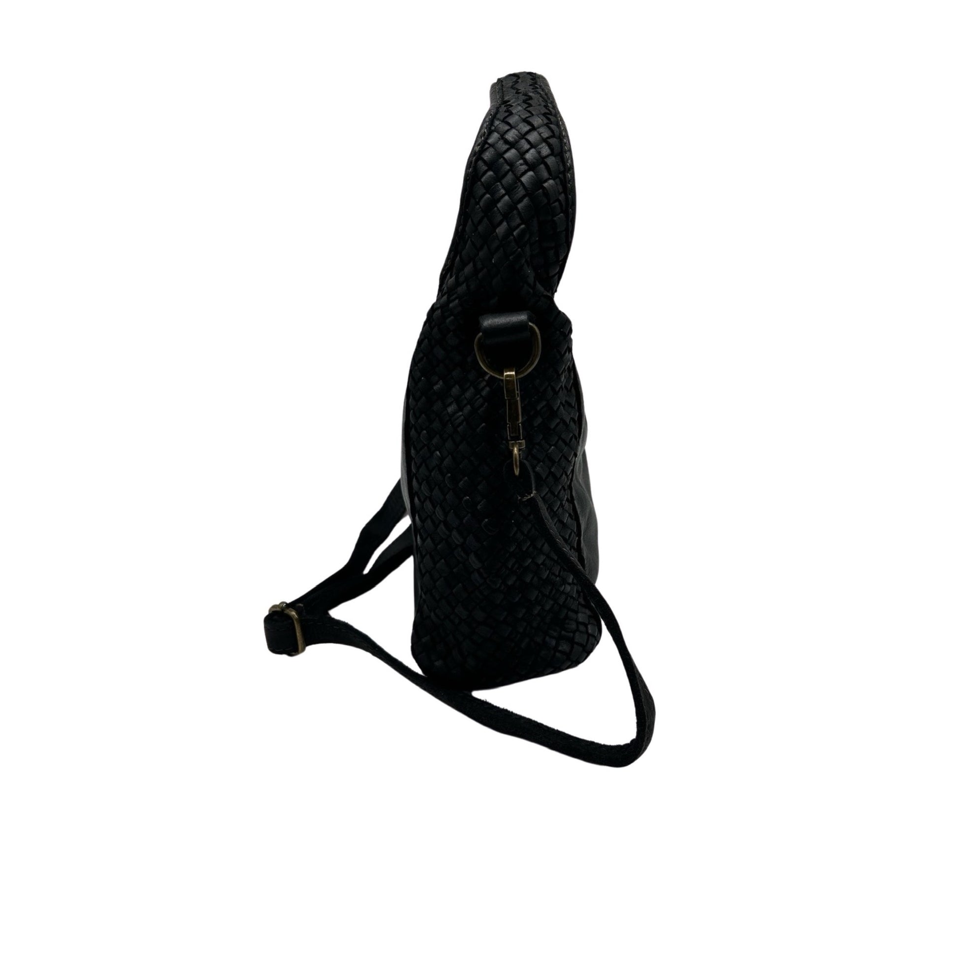 Le sac Blanca, en cuir de vachette délavé et fabriqué en Italie, est conçu pour être porté à la main. Il présente des détails tressés sur les côtés et est accompagné d'une grande bandoulière à l'intérieur pour une polyvalence accrue. Cet accessoire allie élégance, robustesse et qualité artisanale italienne, parfait pour compléter votre look avec style.