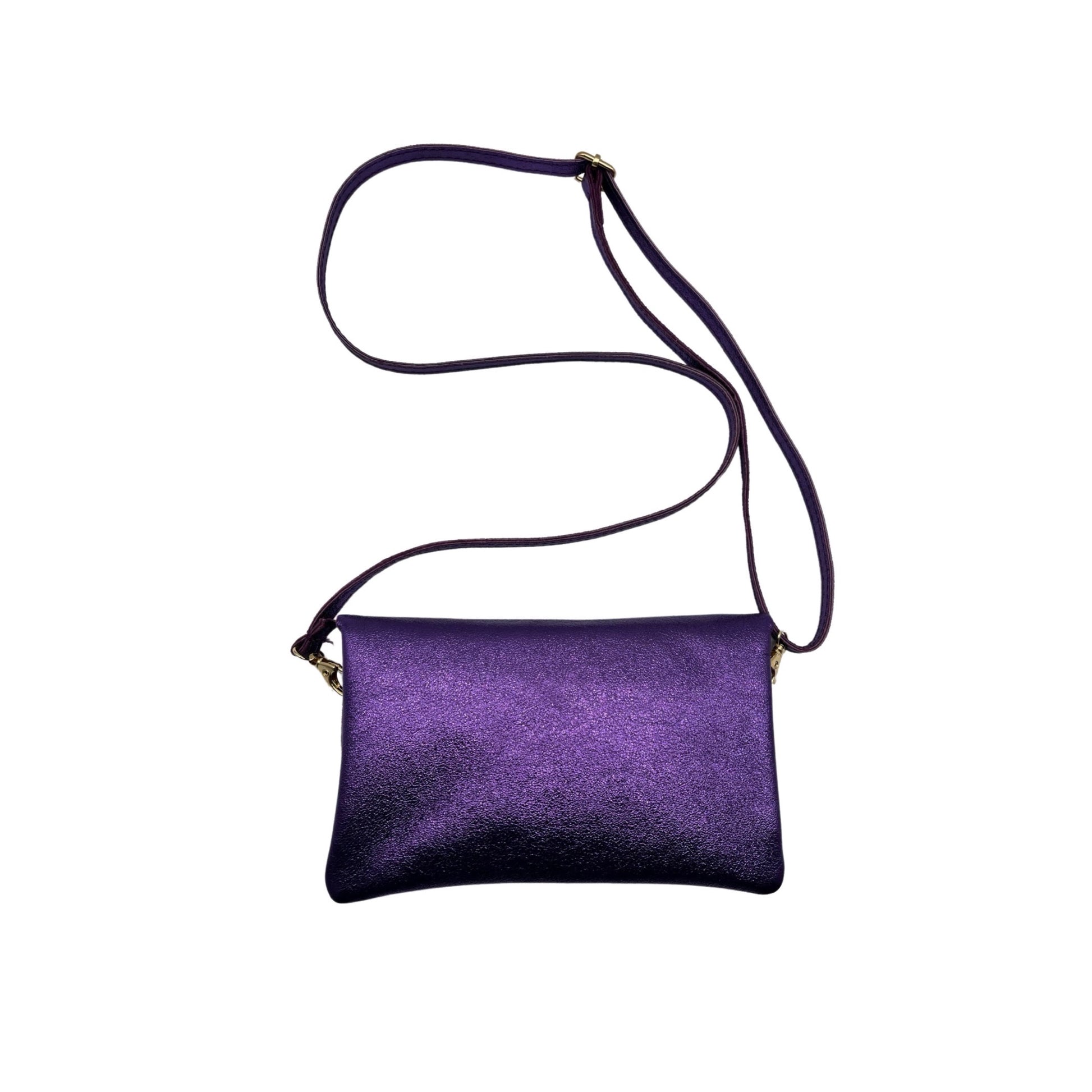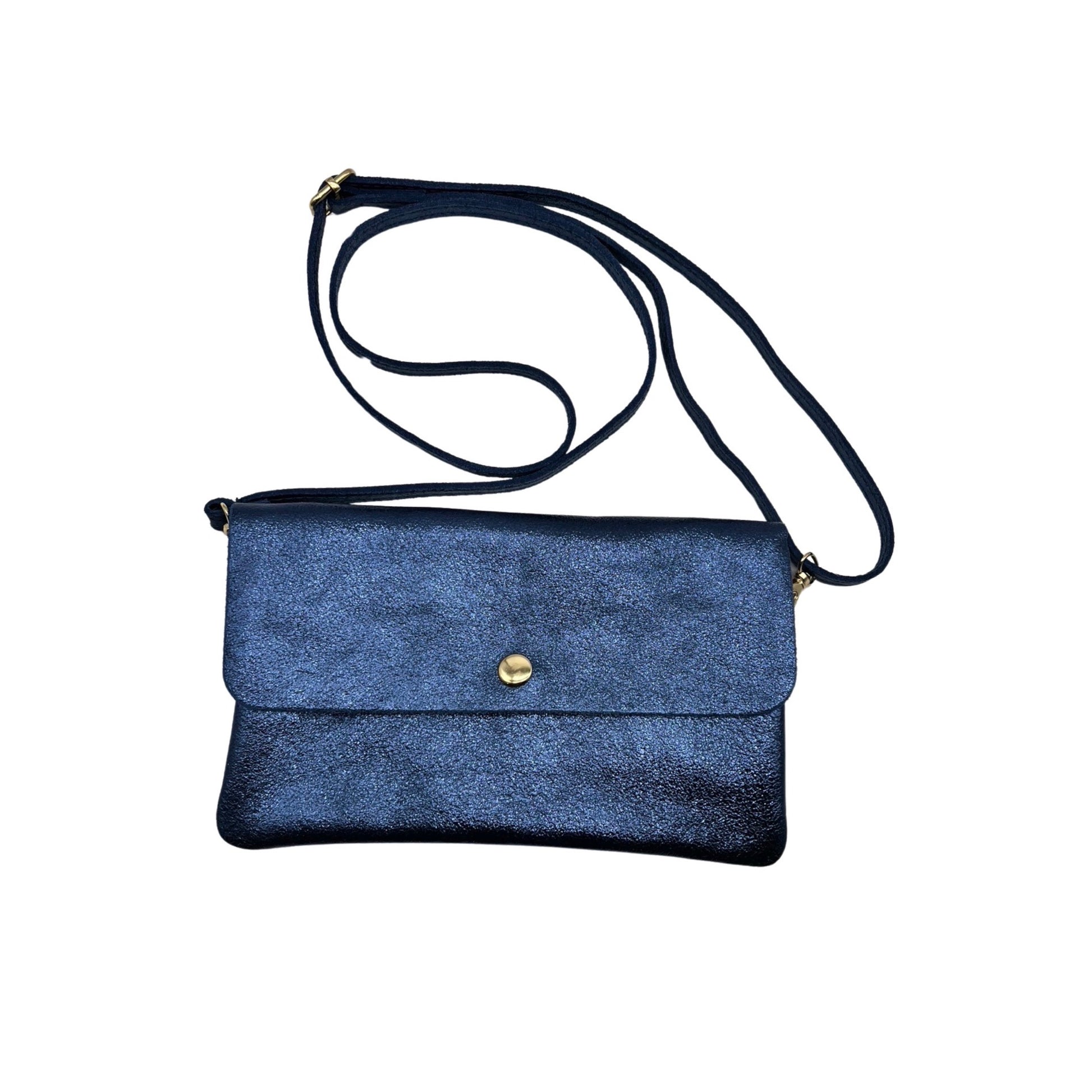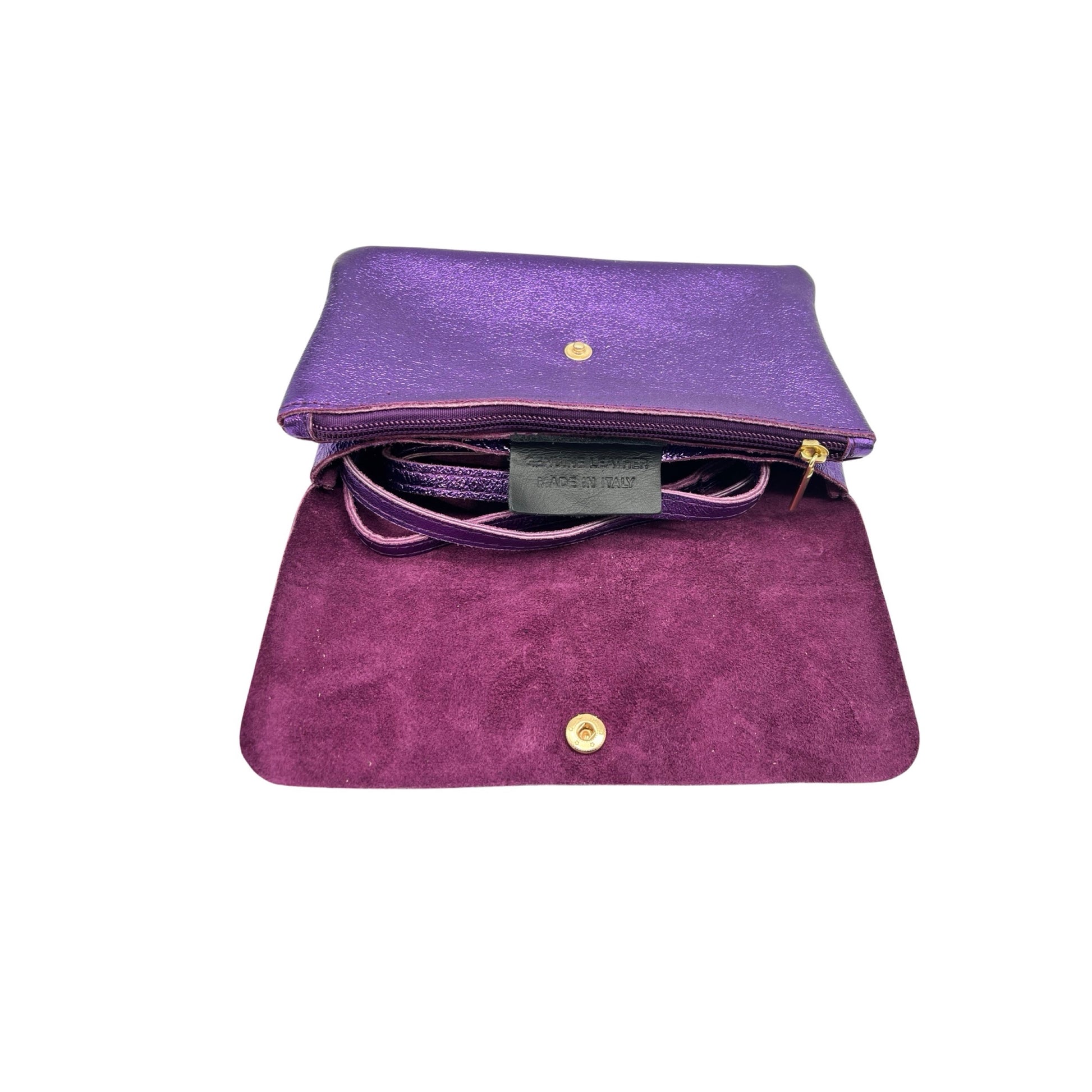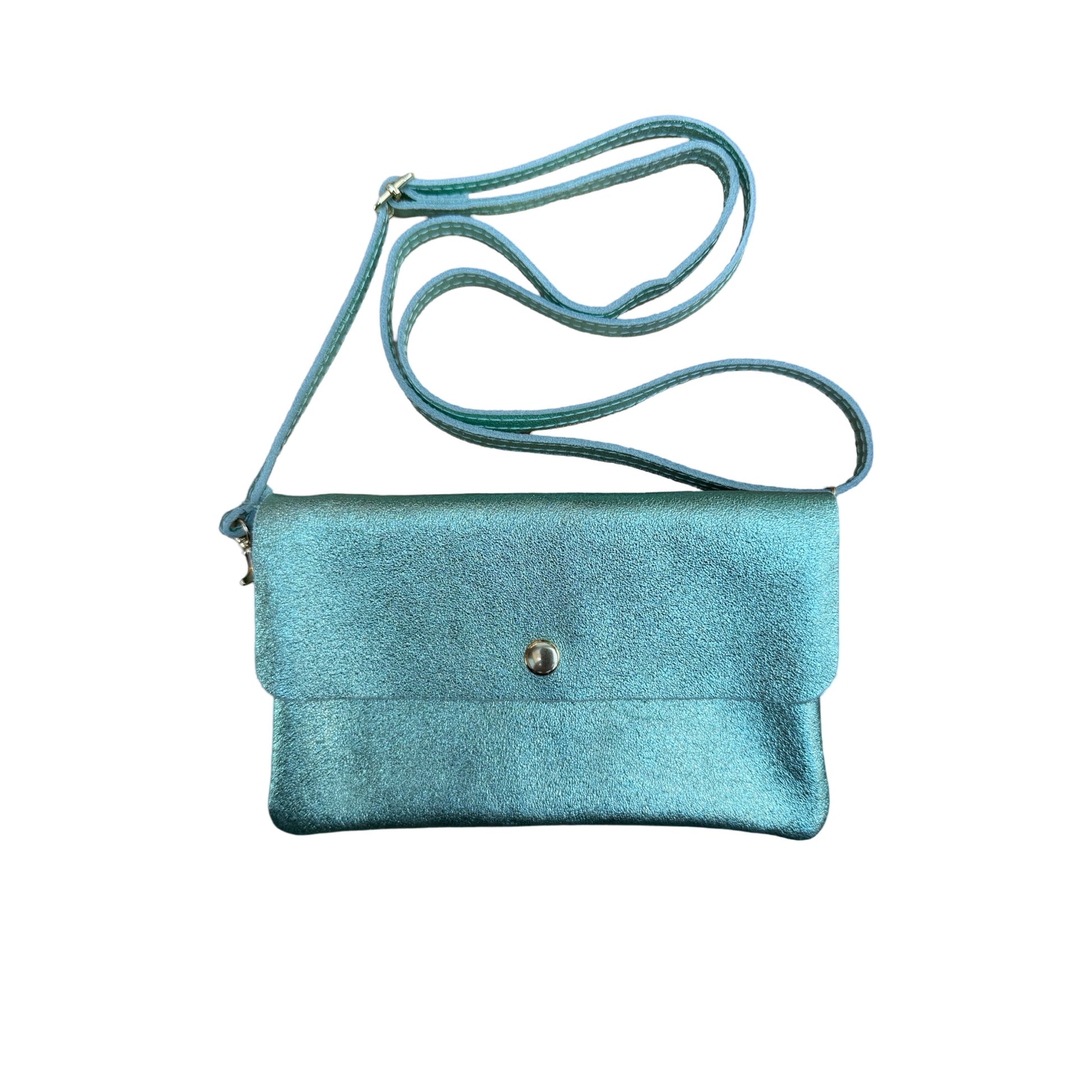 Pochette bandouliére élégant pour femme en cuir de vachette irisé de 20 cm, fabriqué en Italie. Un accessoire de qualité, alliant style et durabilité, idéal pour organiser vos cartes et votre argent avec sophistication.