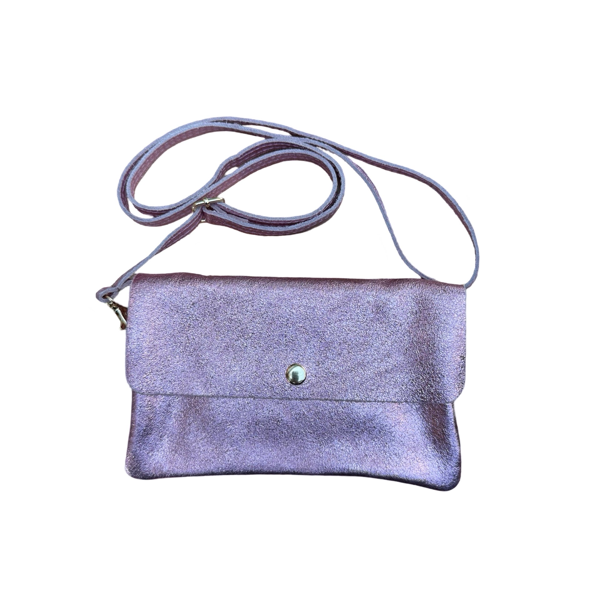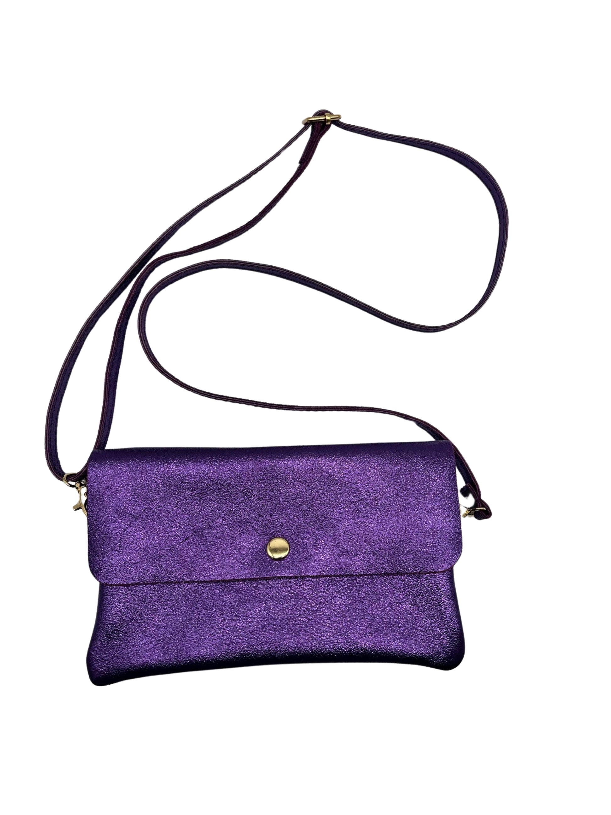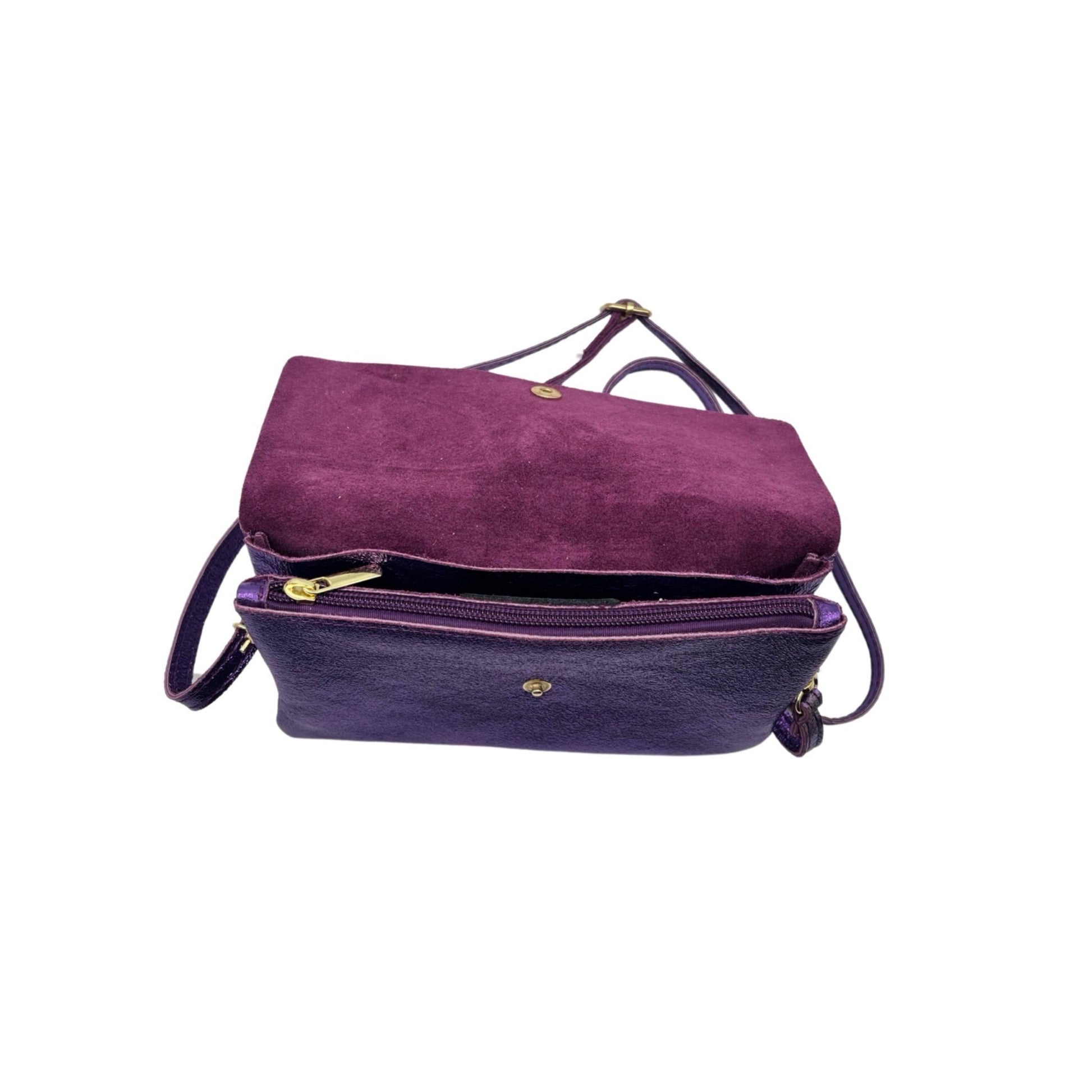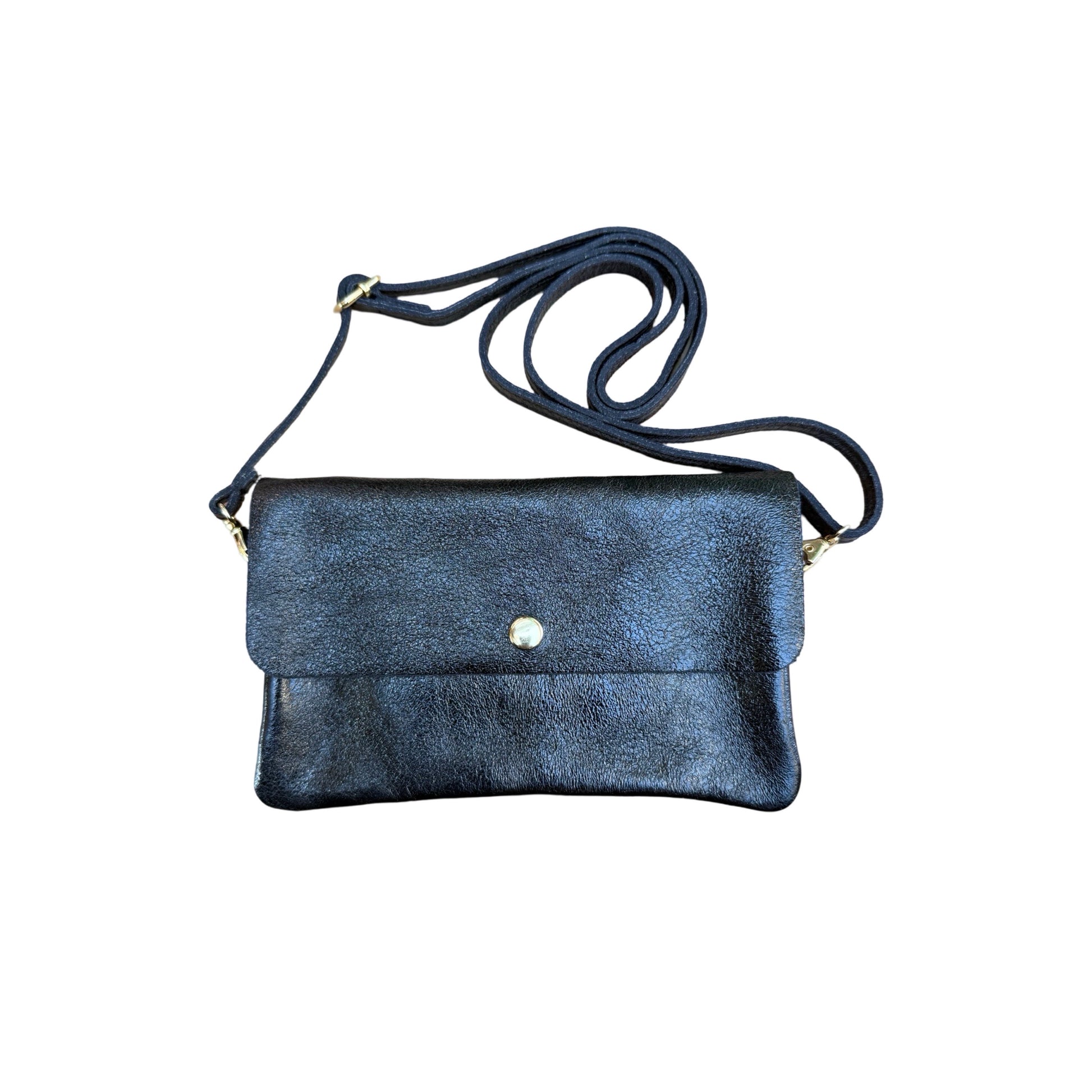 Pochette bandouliére élégant pour femme en cuir de vachette irisé de 20 cm, fabriqué en Italie. Un accessoire de qualité, alliant style et durabilité, idéal pour organiser vos cartes et votre argent avec sophistication.
