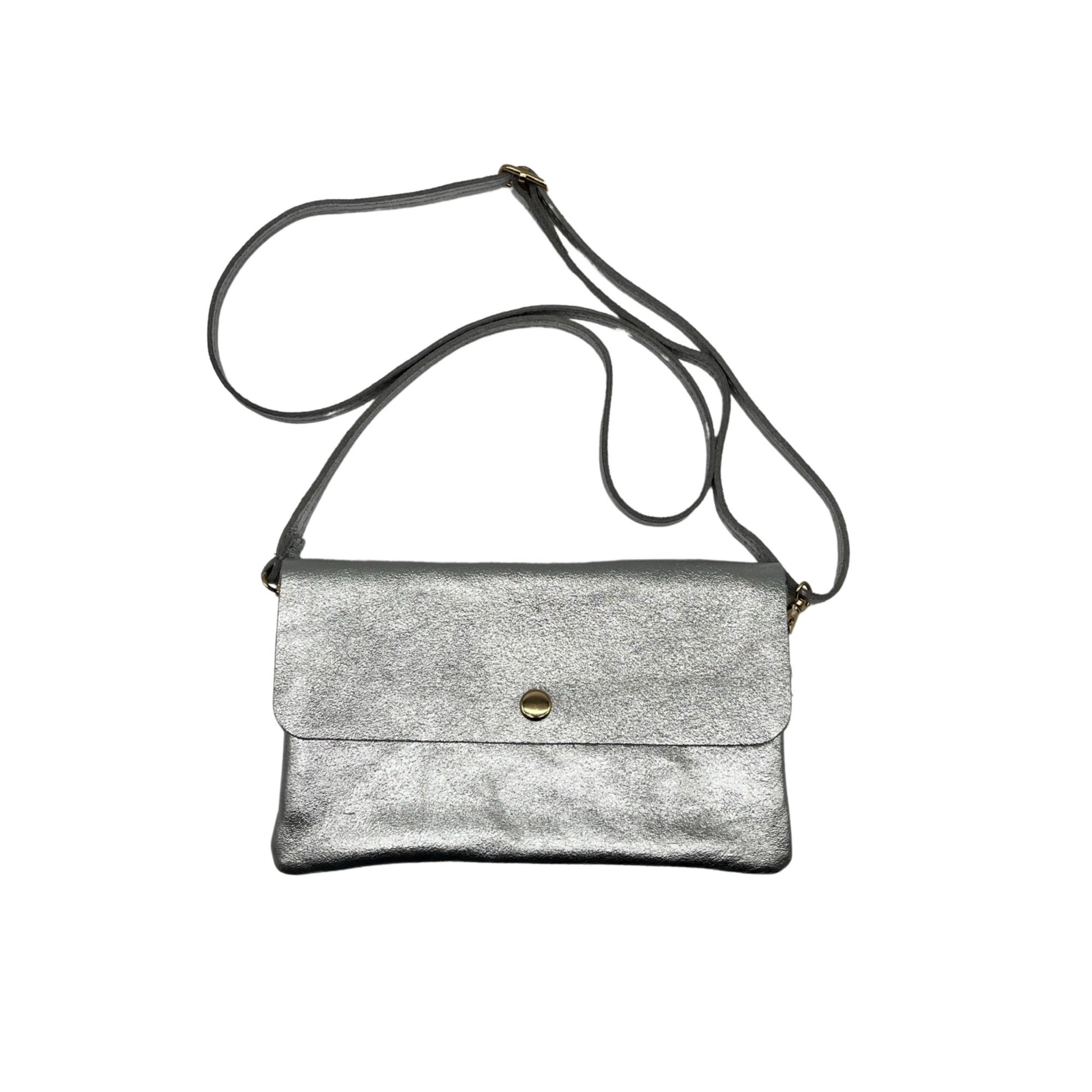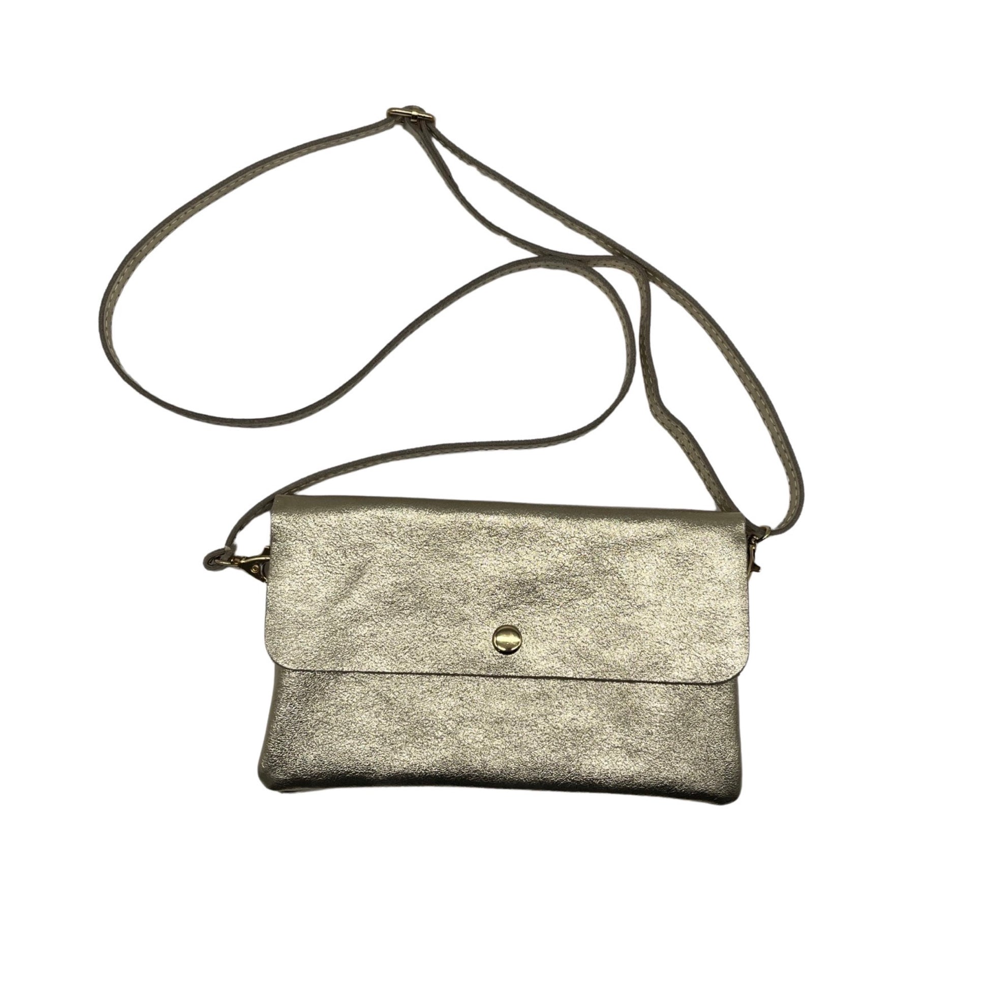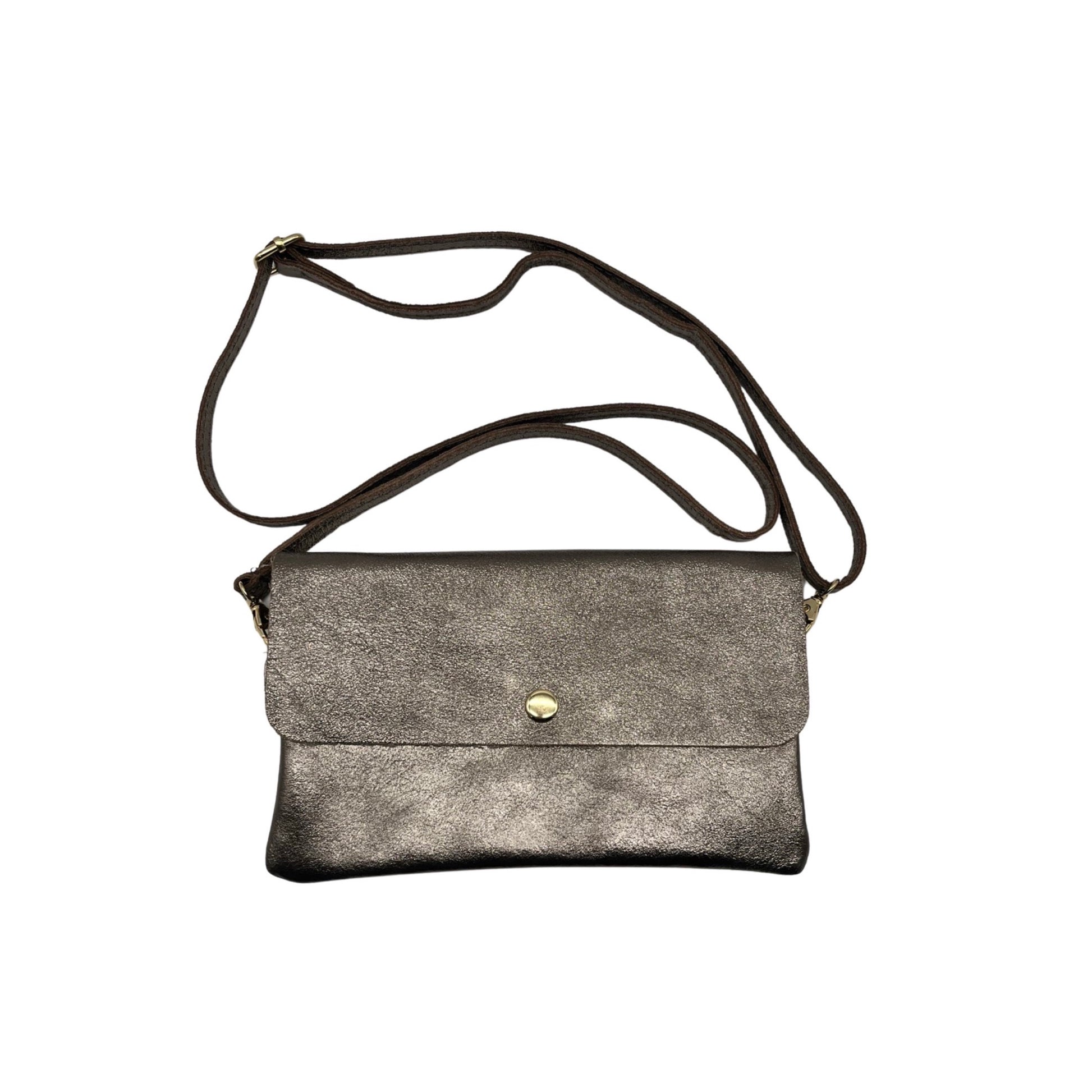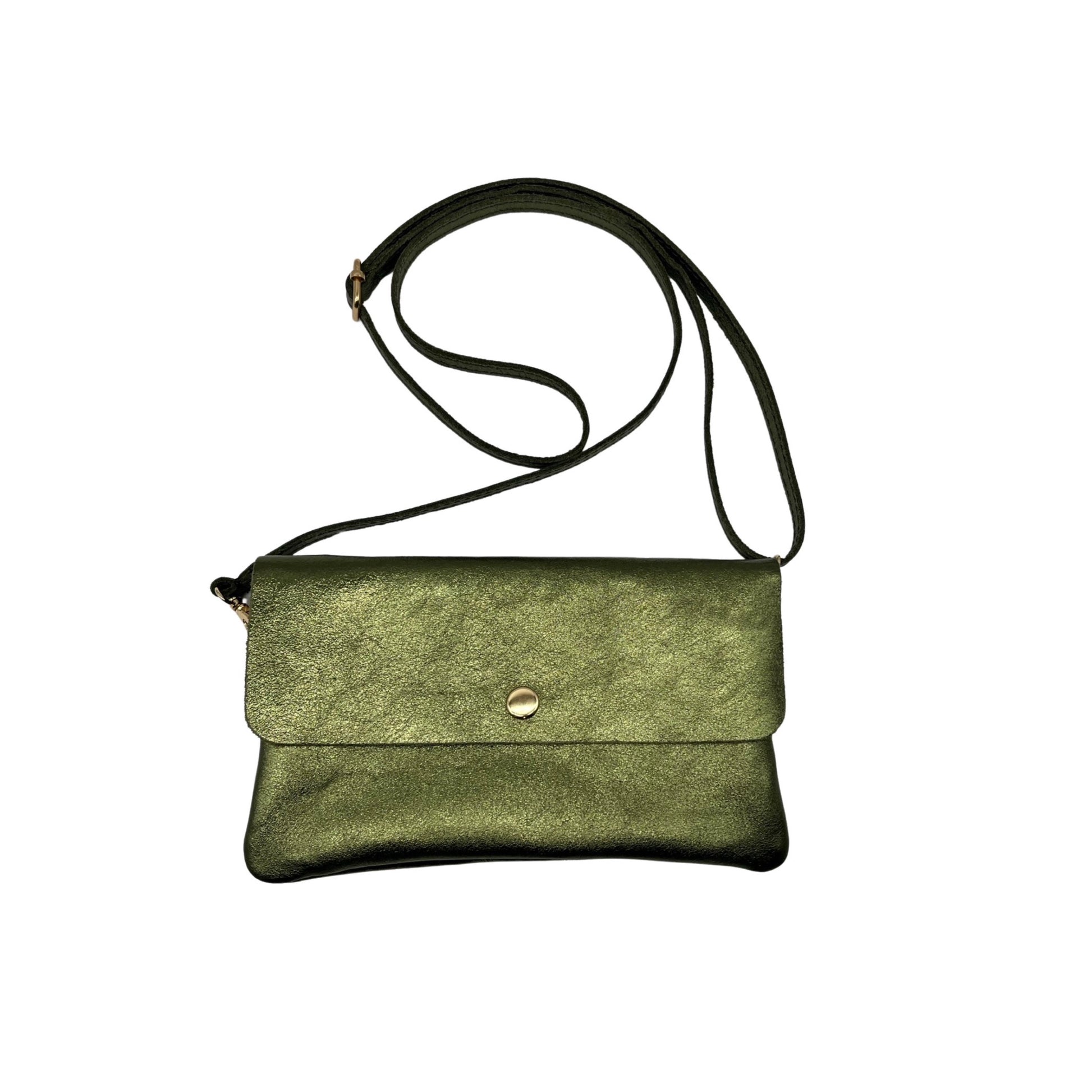 Pochette bandouliére élégant pour femme en cuir de vachette irisé de 20 cm, fabriqué en Italie. Un accessoire de qualité, alliant style et durabilité, idéal pour organiser vos cartes et votre argent avec sophistication.