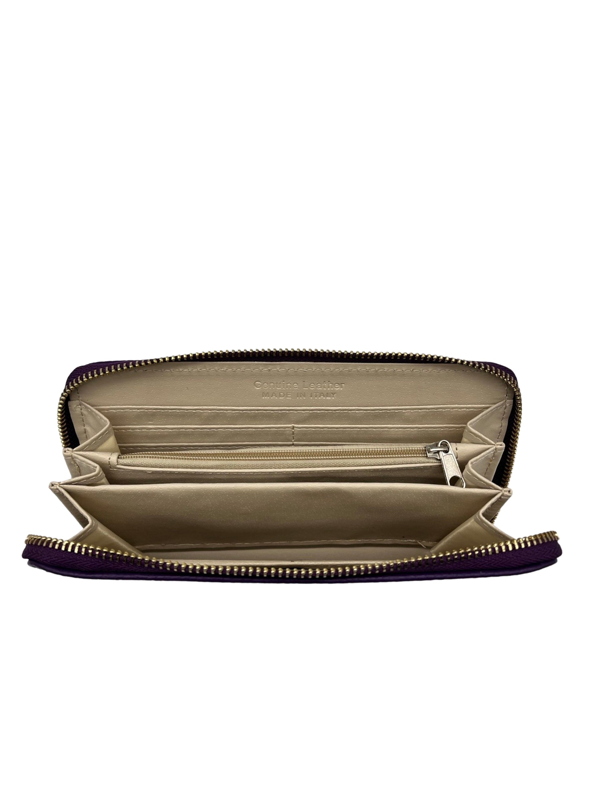 Geldbörse aus Rindsleder für Damen, 20 cm, hergestellt in Italien. Ein raffiniertes Accessoire, das Funktionalität und Eleganz vereint und sich perfekt für die stilvolle Aufbewahrung von Karten, Geld und anderen wichtigen Dingen eignet.