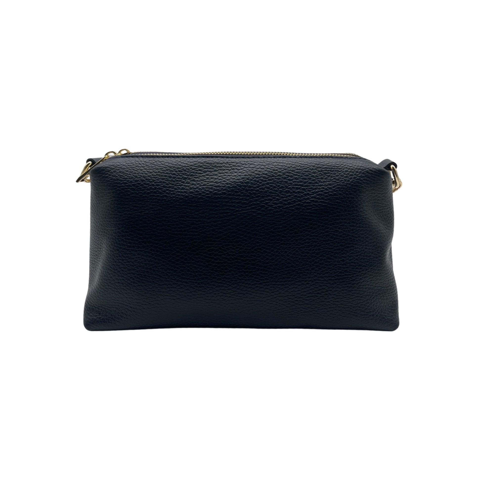 Zoe-Tasche aus genarbtem Rindsleder, mit zwei Fächern und in exquisiter italienischer Handwerkskunst gefertigt. Es verfügt über doppelte Schultergurte und vereint in seinem Design Funktionalität und Eleganz. Die genarbte Textur des Leders wird hervorgehoben, perfekt für verschiedene Anlässe.