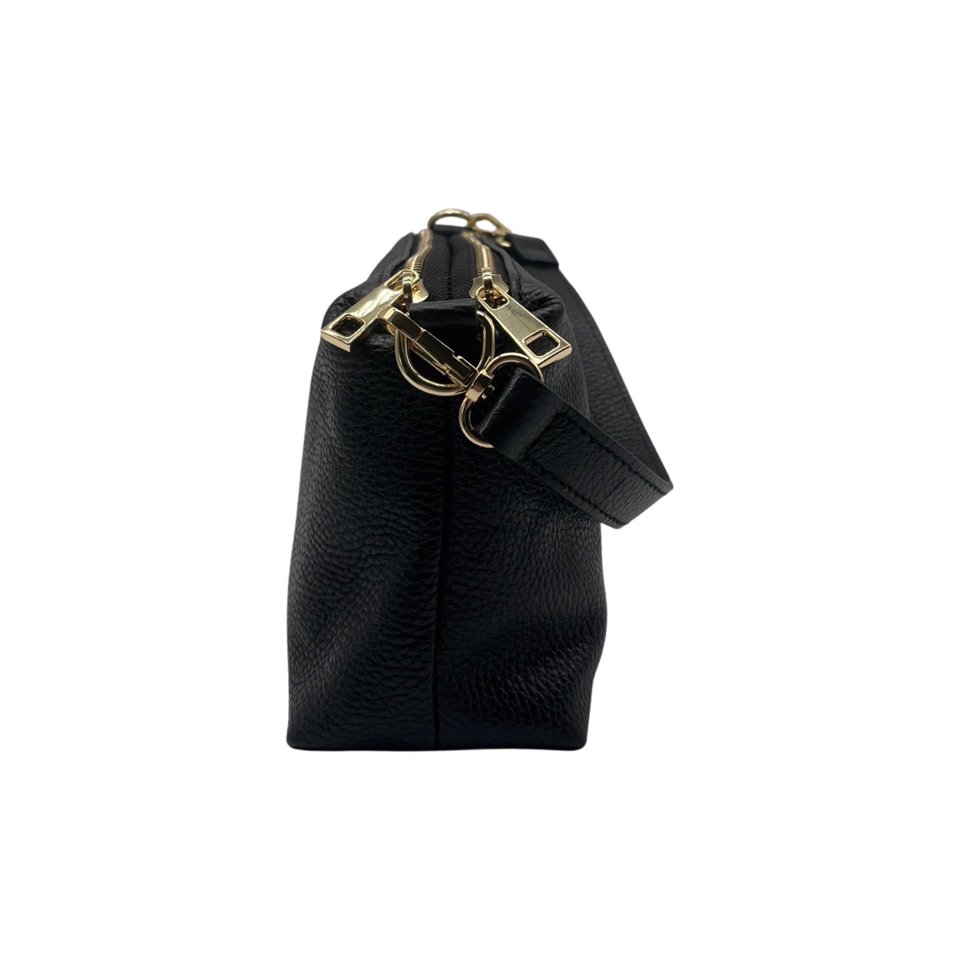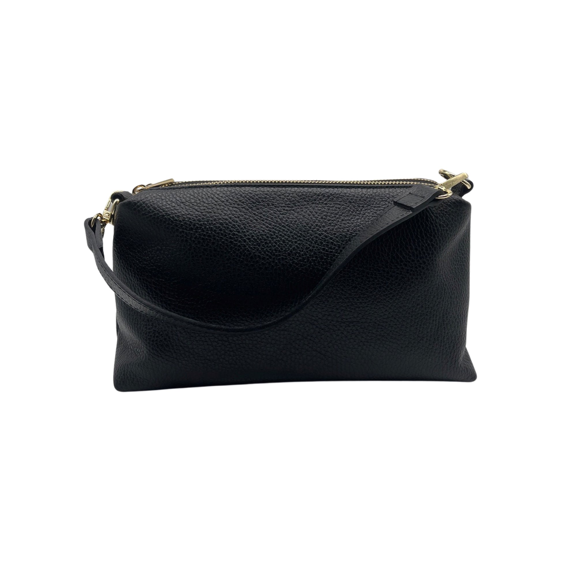 ZOE-TASCHE AUS genarbtem Leder, 2 Fächer, Schwarz