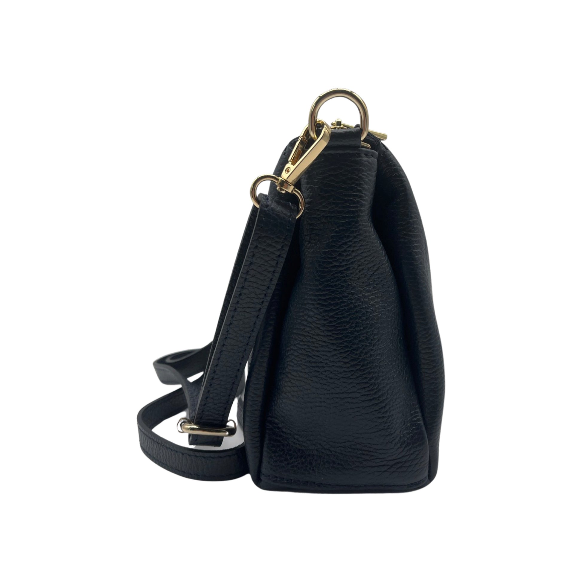 Diese in Italien hergestellte Umhängetasche aus genarbtem Rindsleder mit goldenem Metallfinish bietet drei geräumige Fächer, in denen Sie Ihre Sachen elegant organisieren können. Sein raffiniertes Design vereint Funktionalität und Stil und macht es zu einem unverzichtbaren Modeaccessoire für alle Gelegenheiten.