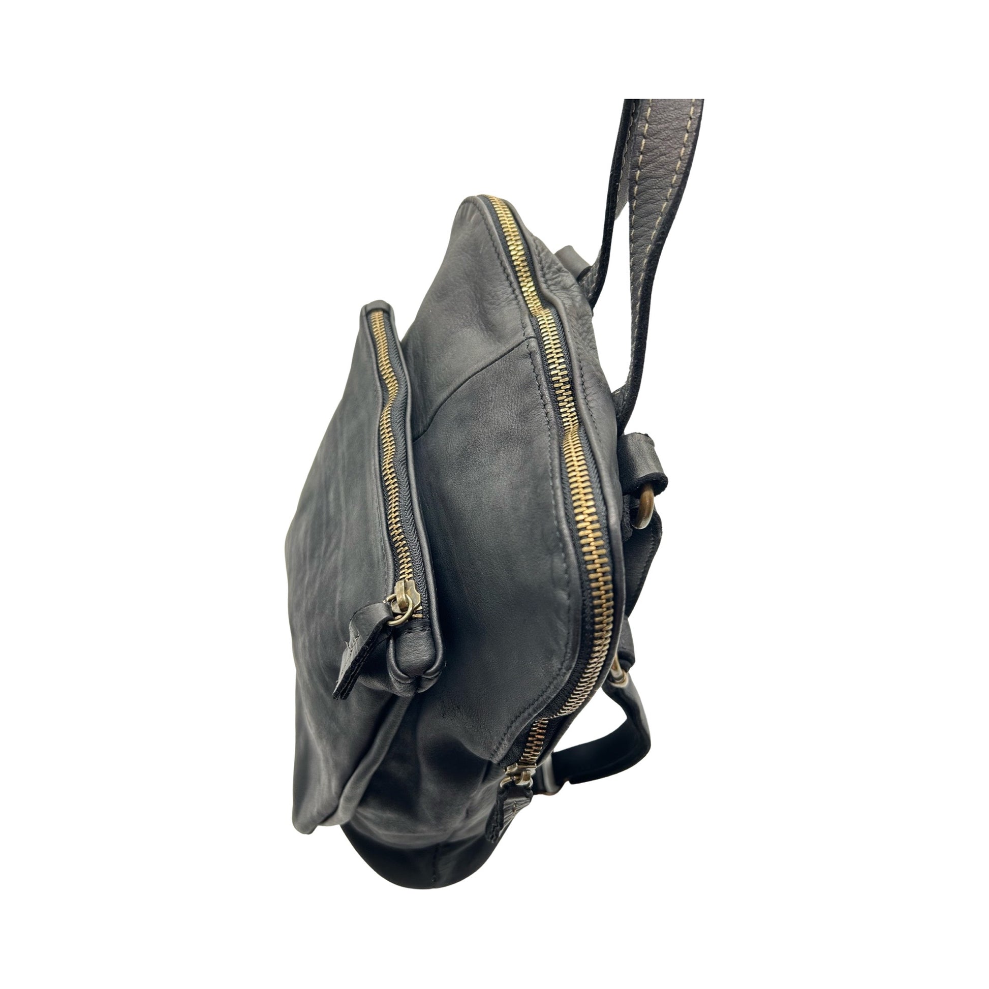 RUCKSACK AUS GEWASCHTEM LORENZA-SCHWARZEM LEDER Design in Paris