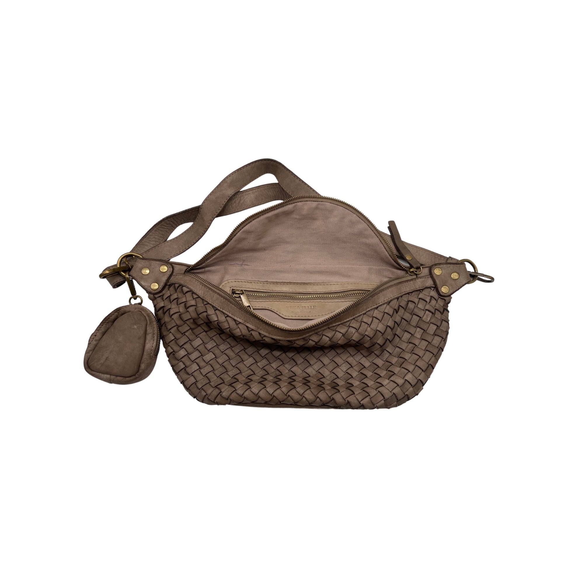 Die Gürteltasche Ambra aus gewaschenem Rindsleder ist eine italienische Kreation mit bemerkenswertem Vintage-Stil. Seine einzigartige Flechtung verleiht ihm einen Hauch von Originalität. Praktisch und elegant ist es das ideale Accessoire für einen trendigen Look.