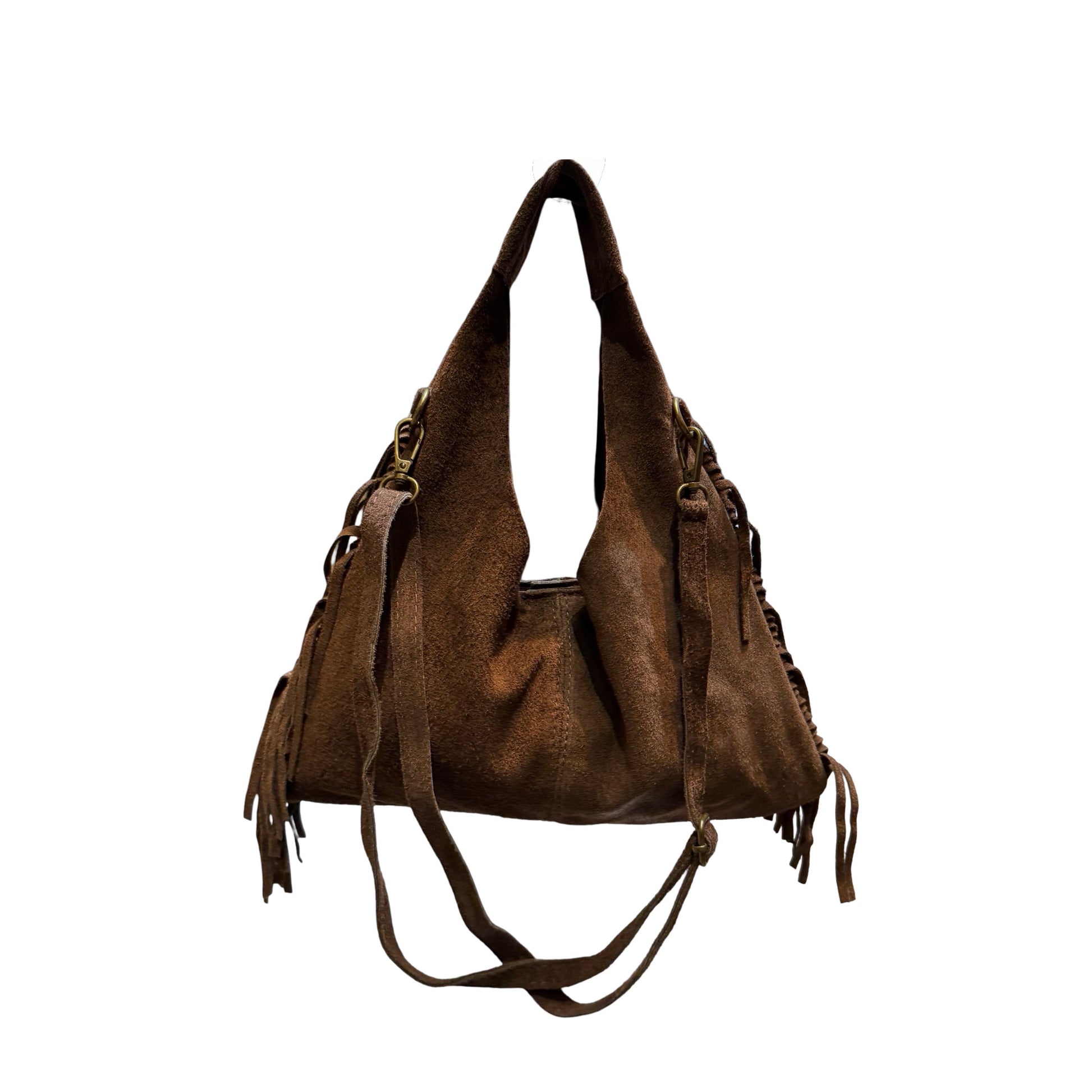 Explorez l’alliance parfaite du cuir suédé et des franges bohèmes avec ce sac bandoulière au charme irrésistible. Conçu pour celles qui cherchent à allier élégance décontractée et fonctionnalité, ce modèle offre une touche d’originalité et de mouvement à toutes vos tenues.