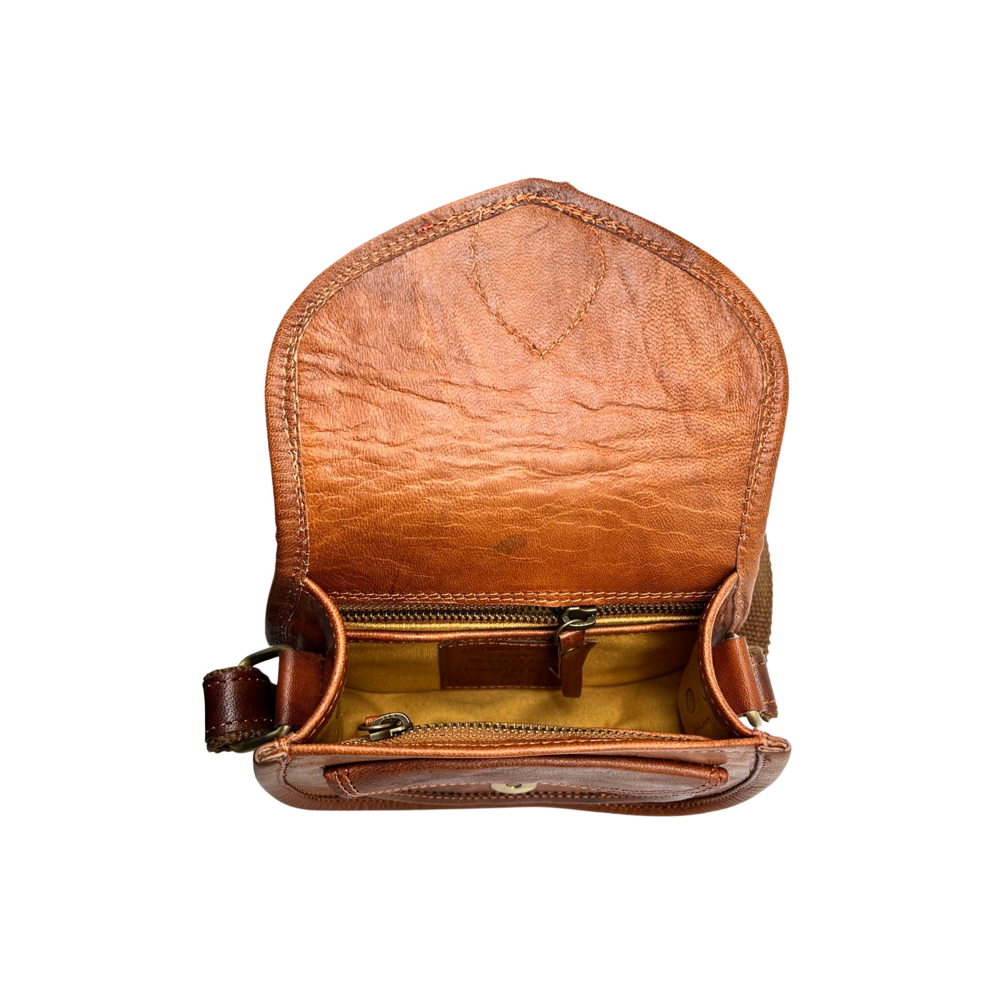 - Die Cheyenne-Umhängetasche ist handgefertigt aus echtem Ziegenleder für bemerkenswerte handwerkliche Qualität. Sein in Paris entwickeltes Vintage-Design verleiht diesem praktischen und eleganten Stück mit Leoparden-Finish einen Hauch von Retro-Charme.