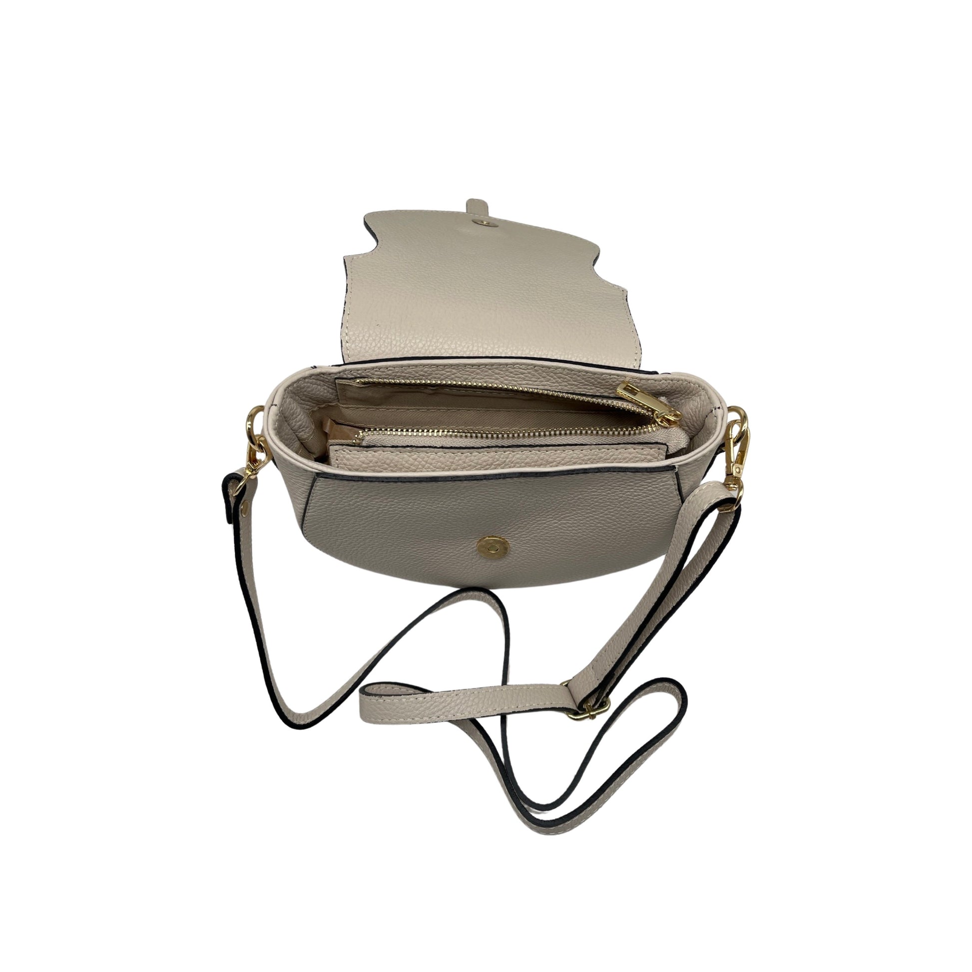 Umhängetasche Madelena aus beigem genarbtem Leder