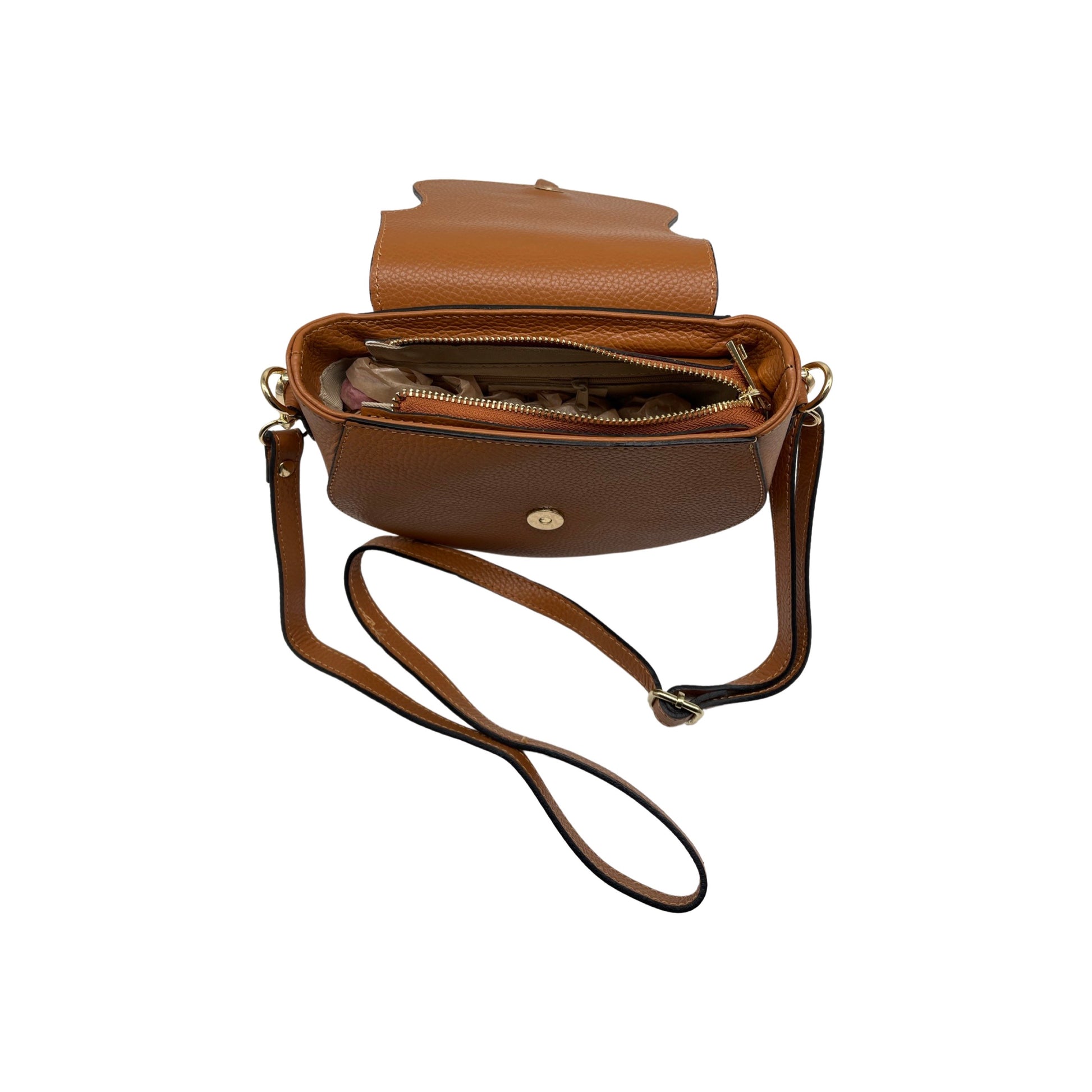 Umhängetasche Madelena aus genarbtem Leder, Kamel