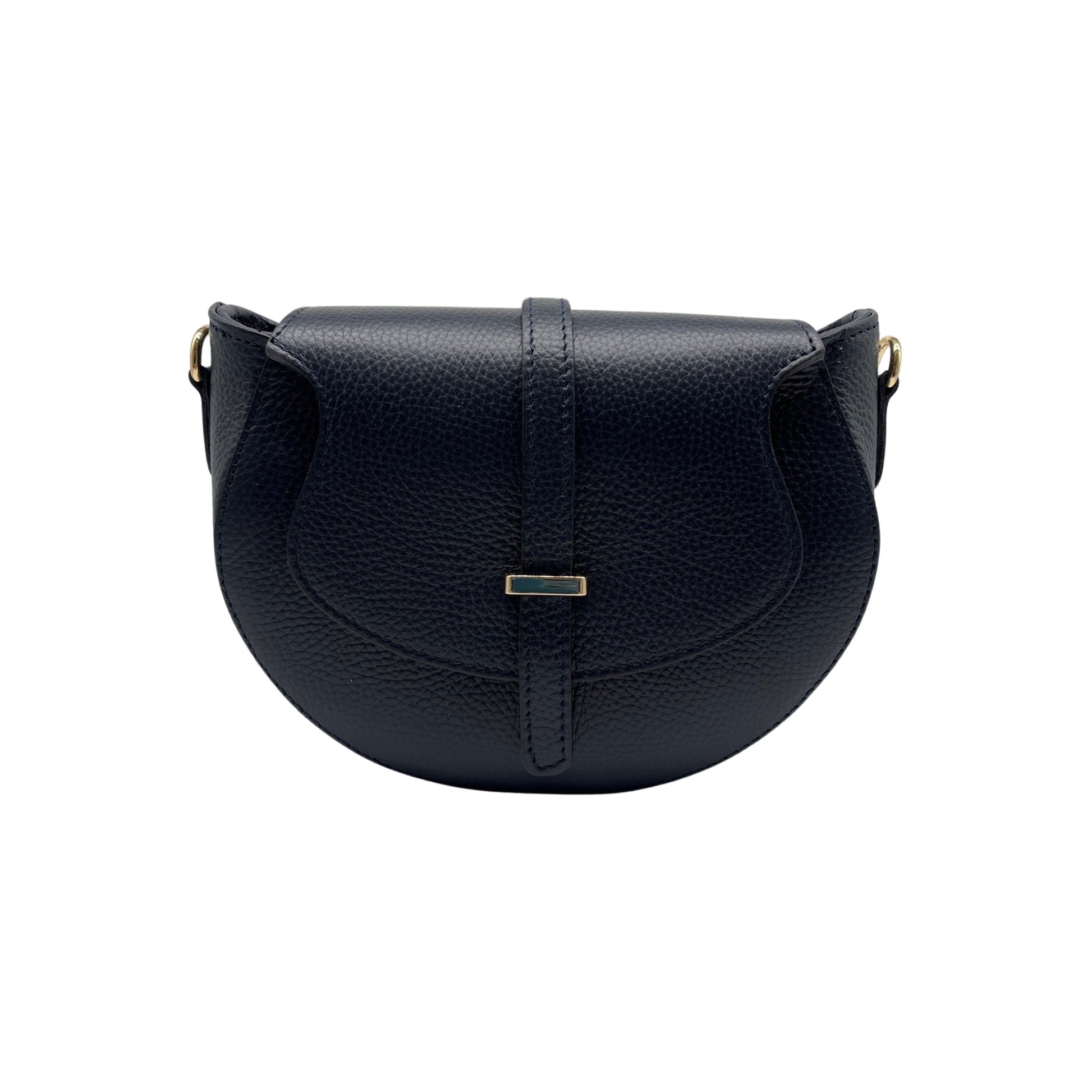 Umhängetasche Madelena aus marineblauem, genarbtem Leder