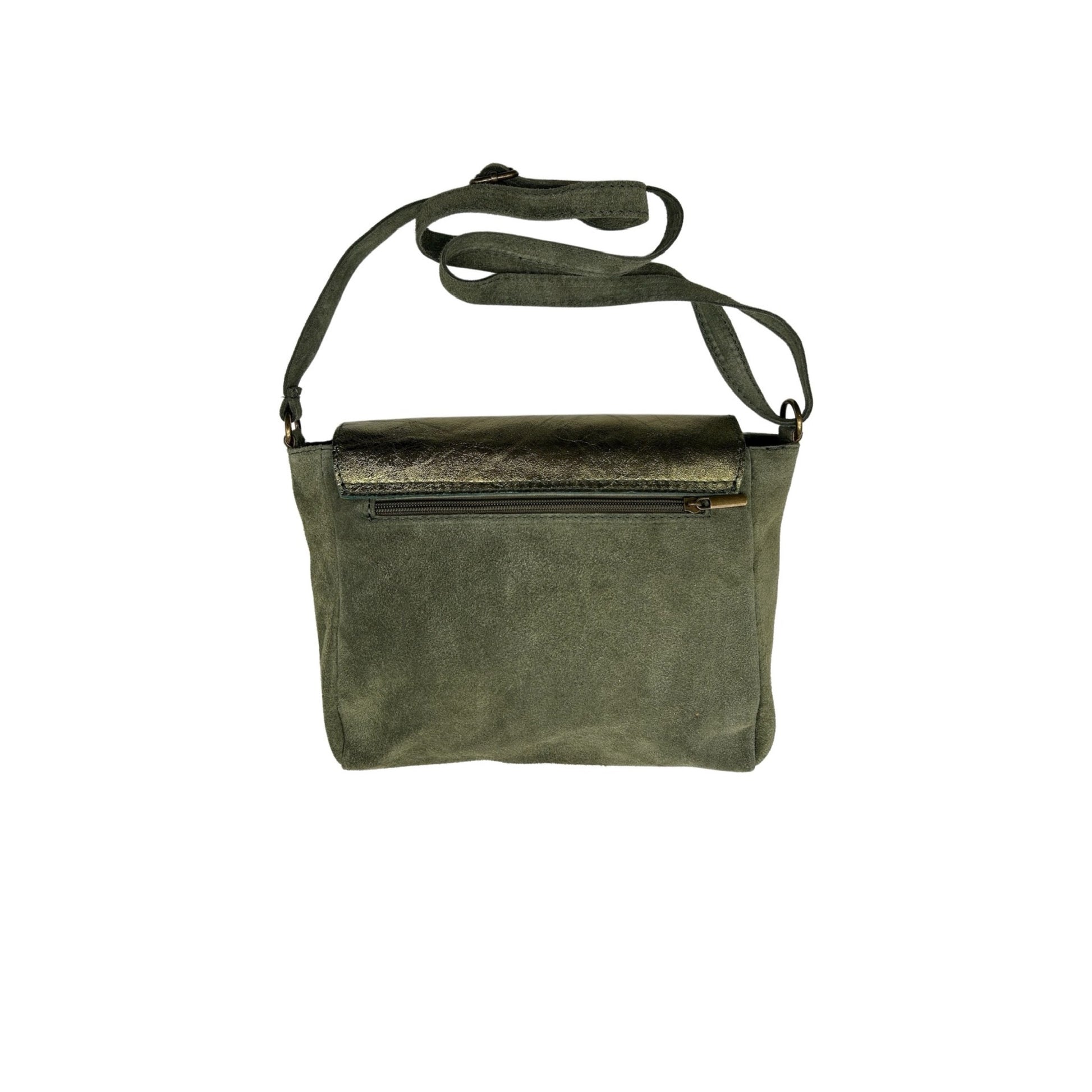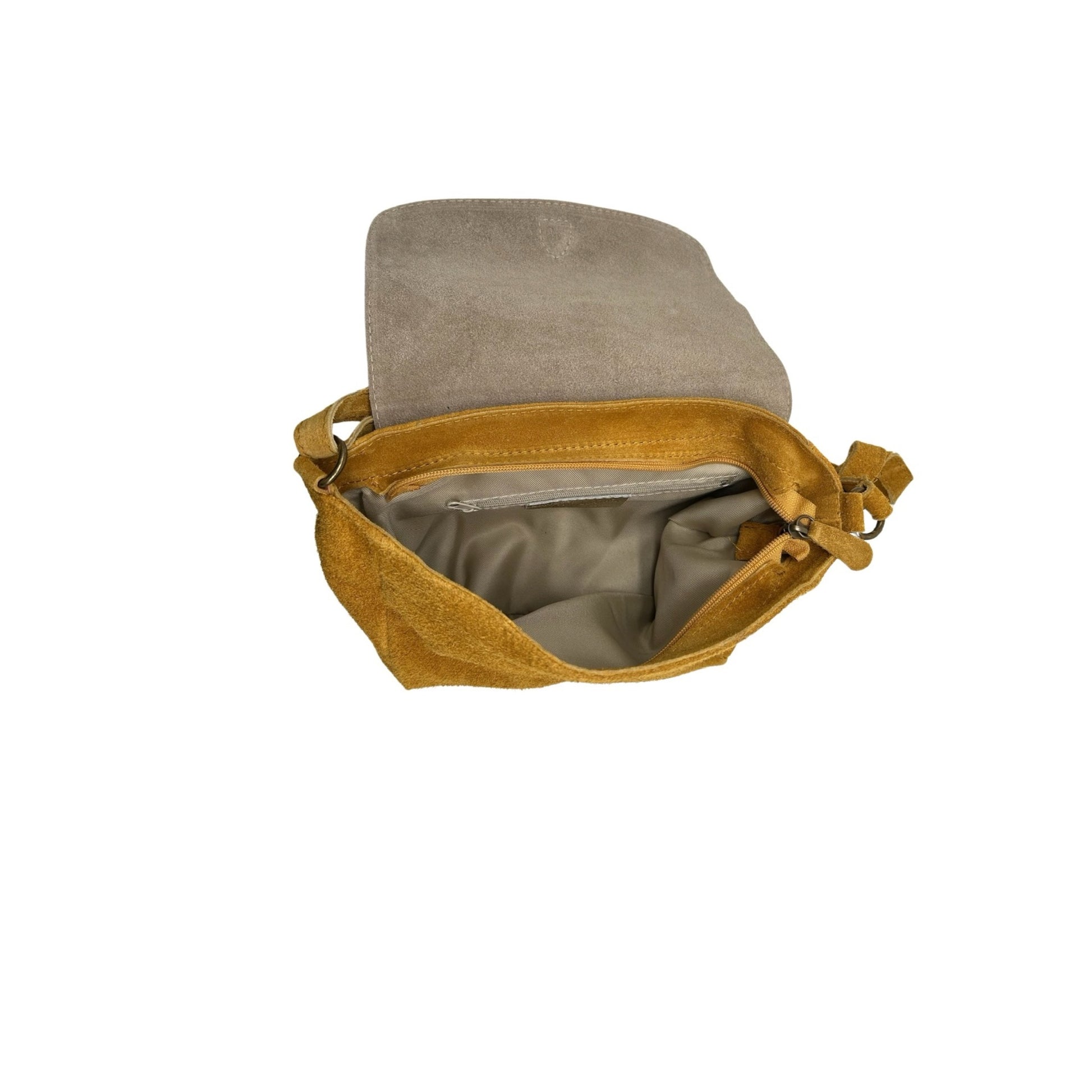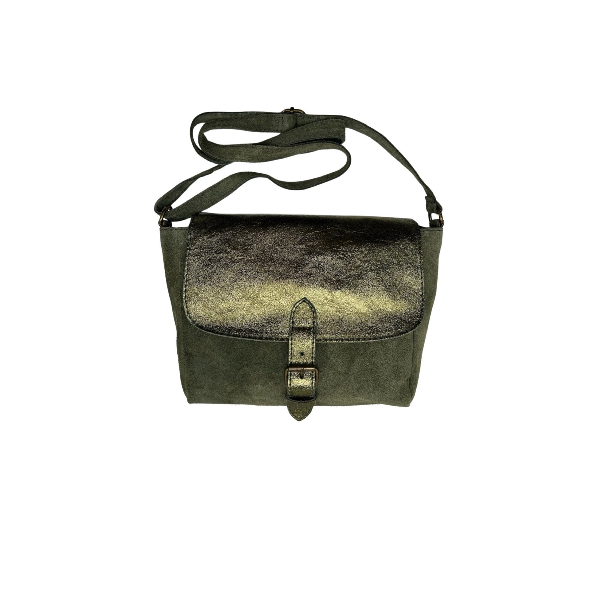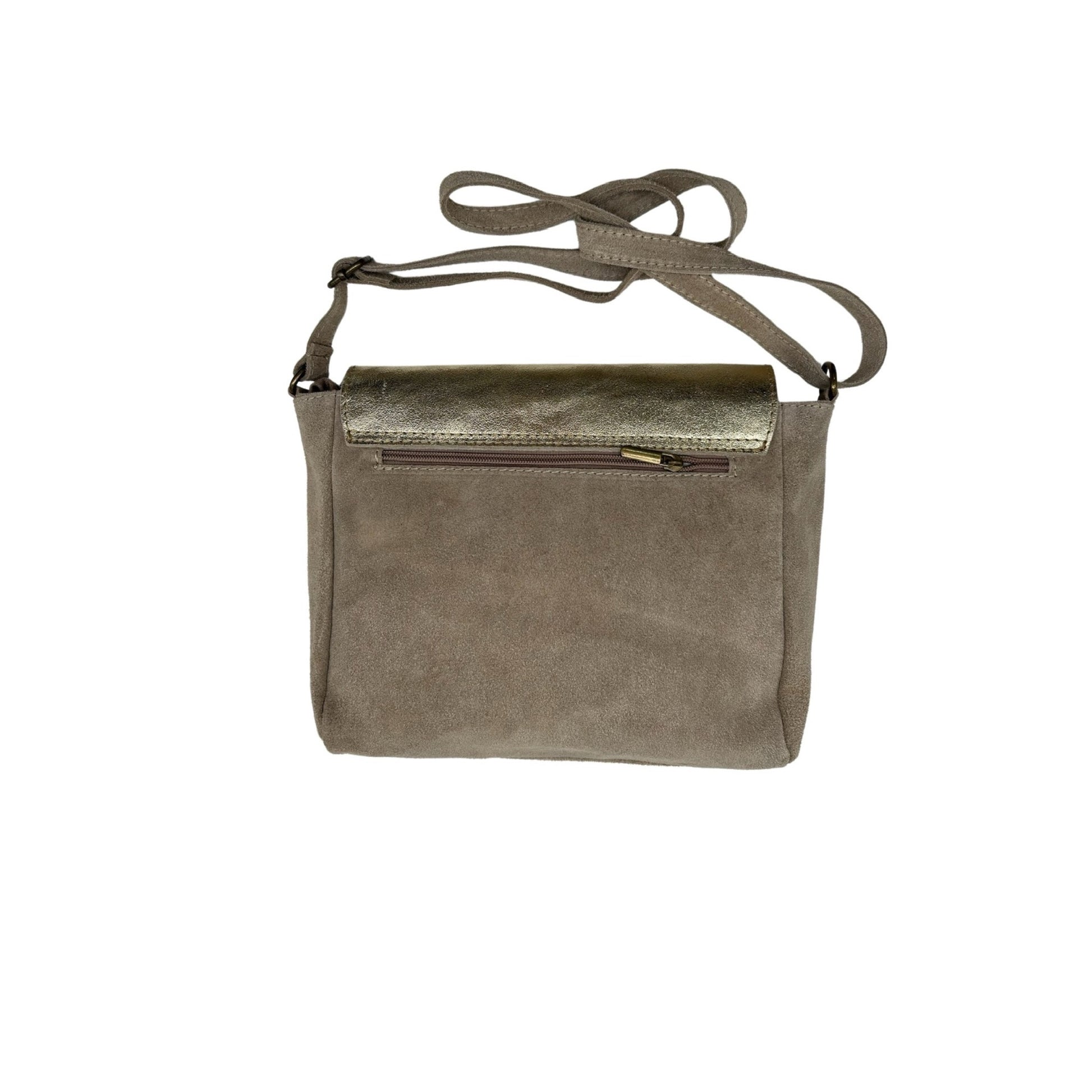 Die in Italien hergestellte Clotilde-Tasche aus Wildleder-Rindsleder ist für das Tragen am ganzen Körper konzipiert. Es ist mit einer schillernden Lederklappe verziert, die diesem italienischen Handwerksaccessoire einen Hauch von Eleganz und Raffinesse verleiht.