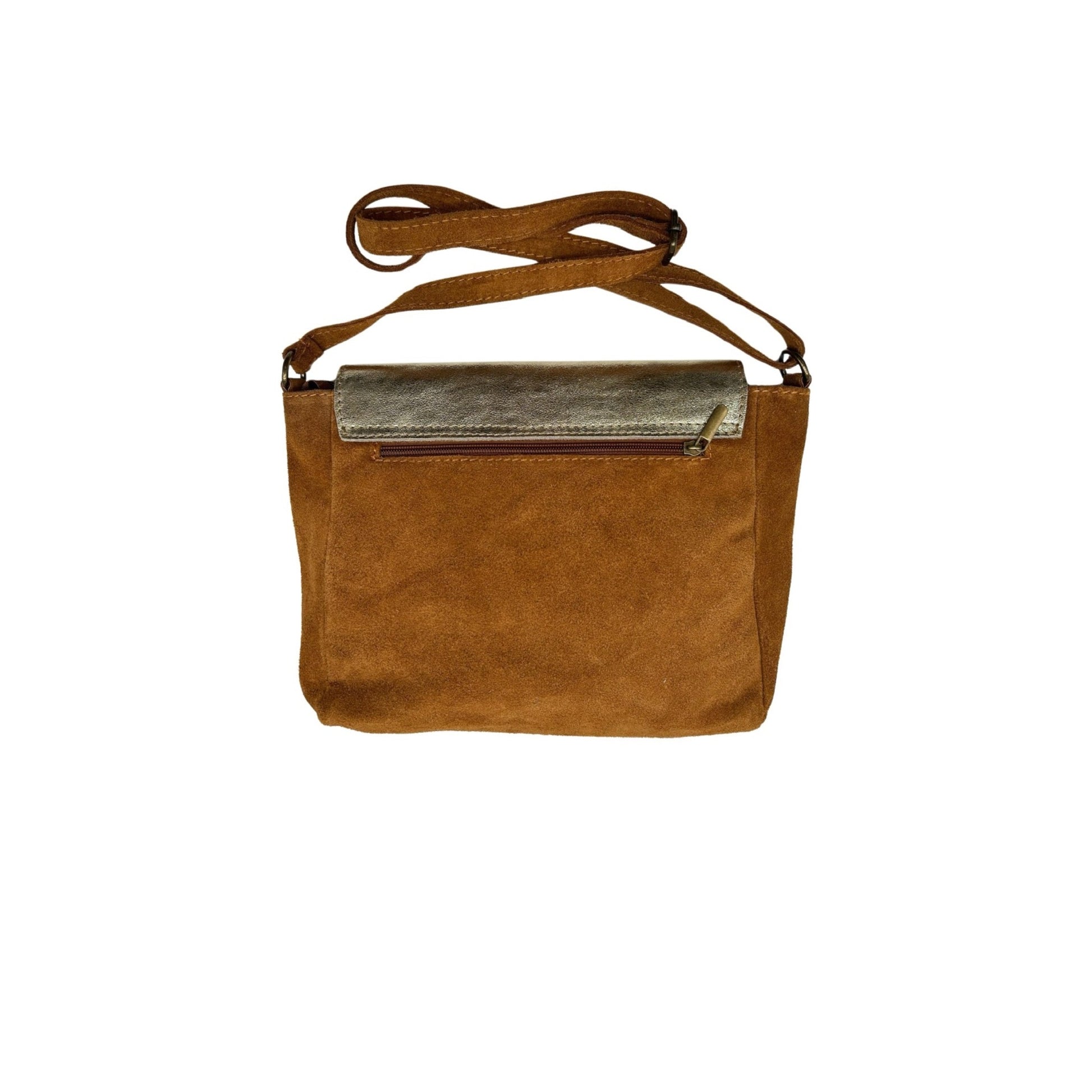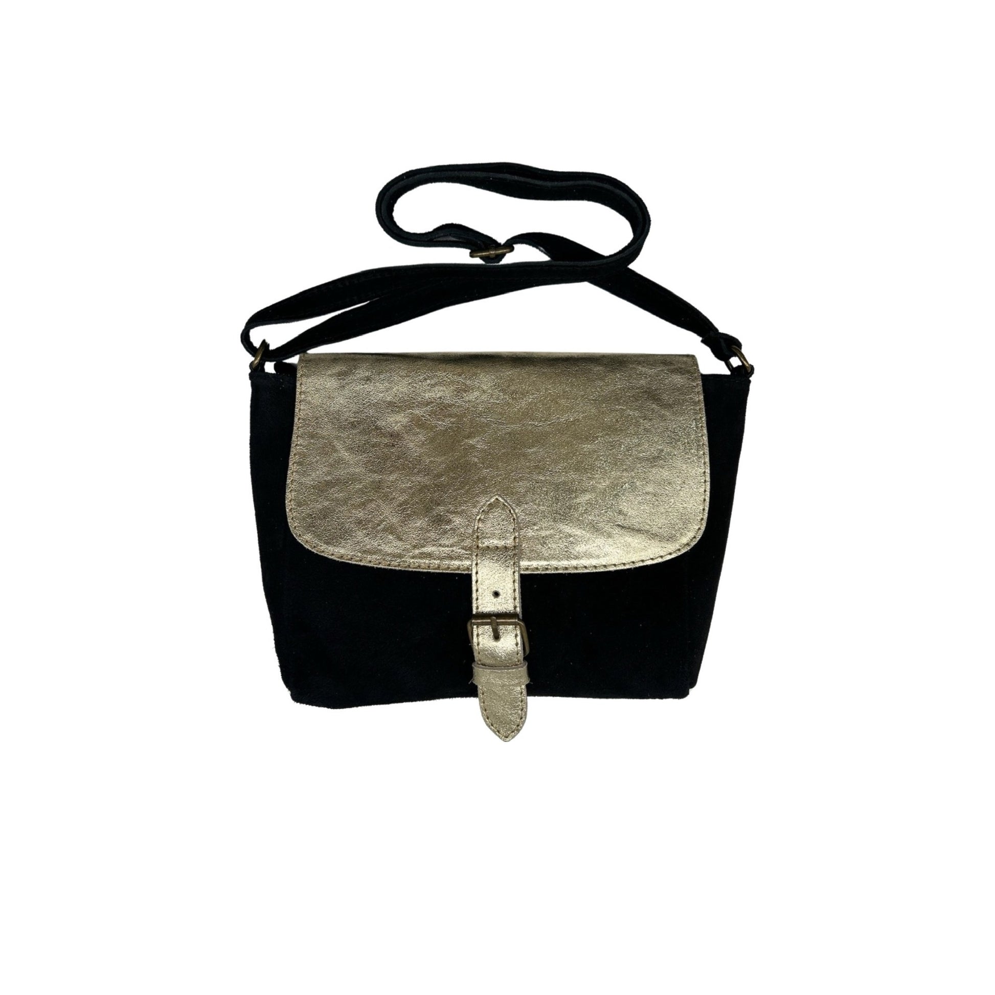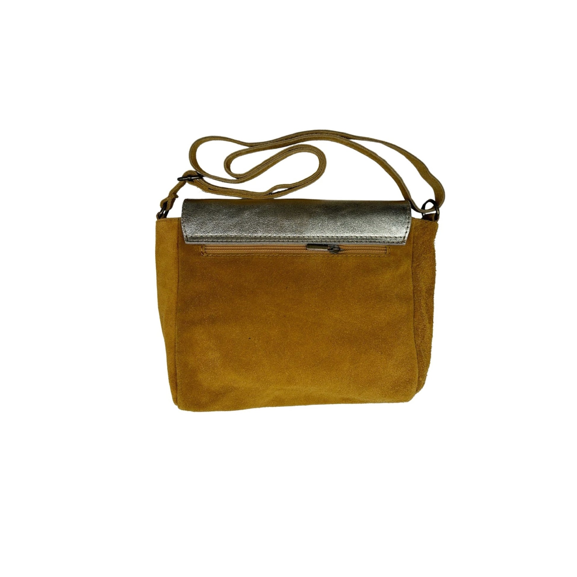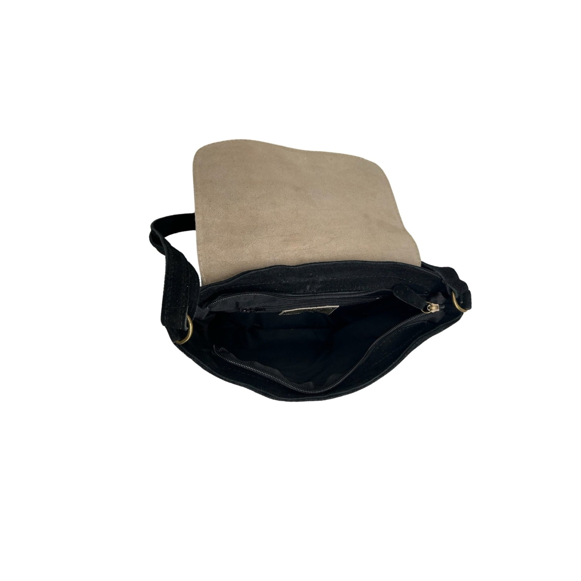 Die in Italien hergestellte Clotilde-Tasche aus Wildleder-Rindsleder ist für das Tragen am ganzen Körper konzipiert. Es ist mit einer schillernden Lederklappe verziert, die diesem italienischen Handwerksaccessoire einen Hauch von Eleganz und Raffinesse verleiht.