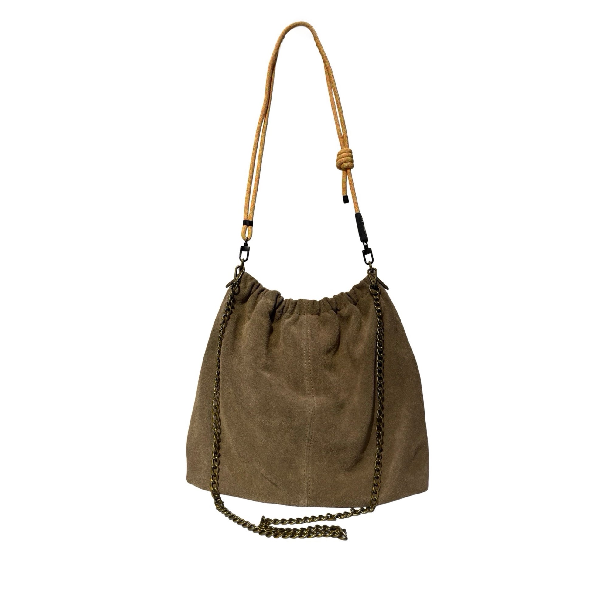 Ce sac bandoulière en cuir suédé plissé allie élégance intemporelle et touche contemporaine. Son design généreux et sa texture douce au toucher en font un accessoire incontournable pour un look décontracté mais sophistiqué. - Dimension :