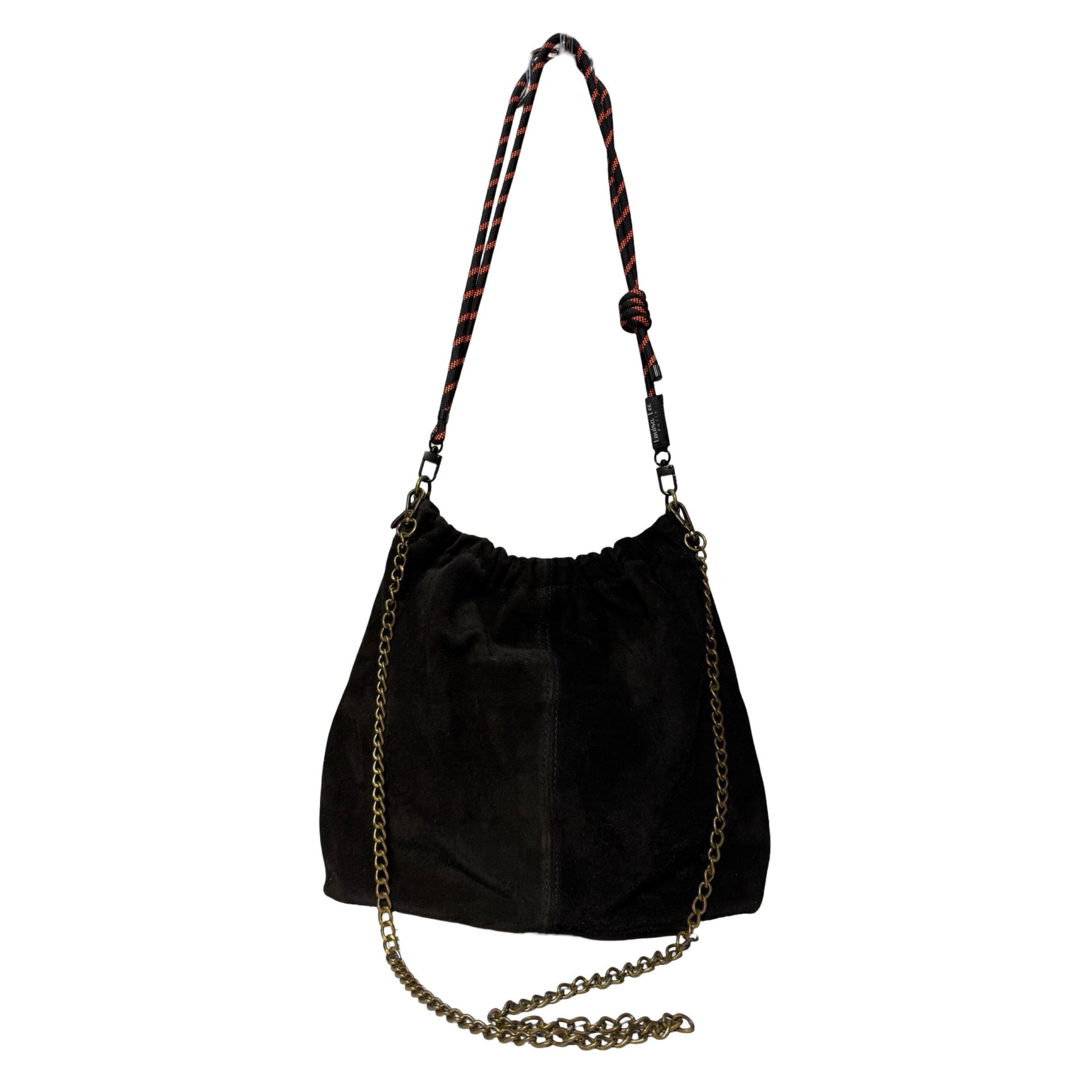 Sac Bandoulière en Cuir Suédé Plissé – Large