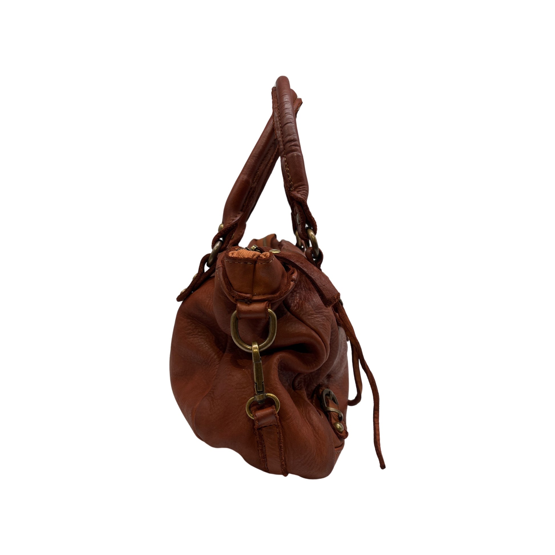 Die in Italien hergestellte Lucie-Tasche aus echtem gewaschenem Rindsleder im Vintage-Stil kann in der Hand oder am Körper getragen werden. Gefüttert und mit den Maßen 30 cm x 20 cm x 10 cm bietet es Eleganz und Funktionalität für Ihre täglichen Bedürfnisse.