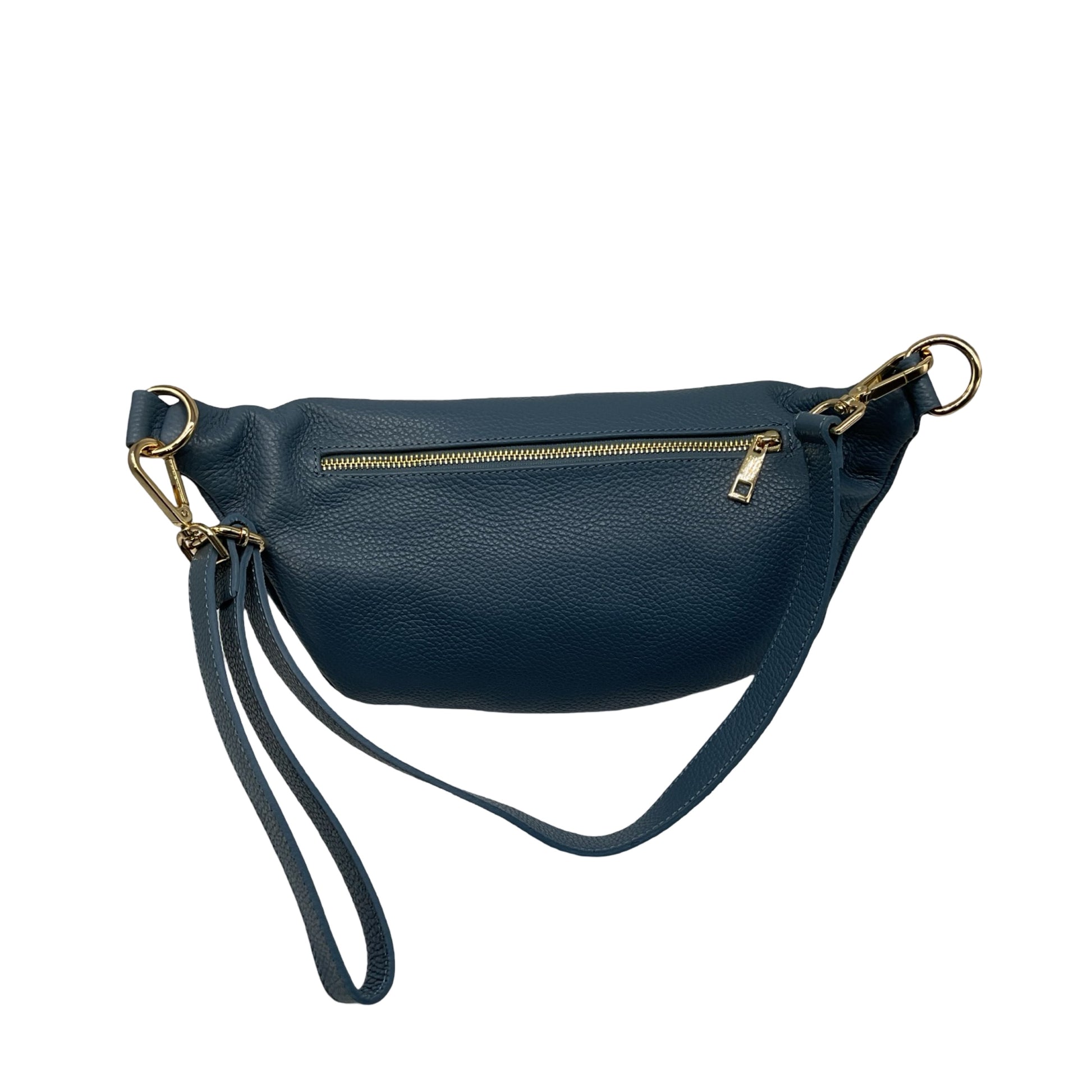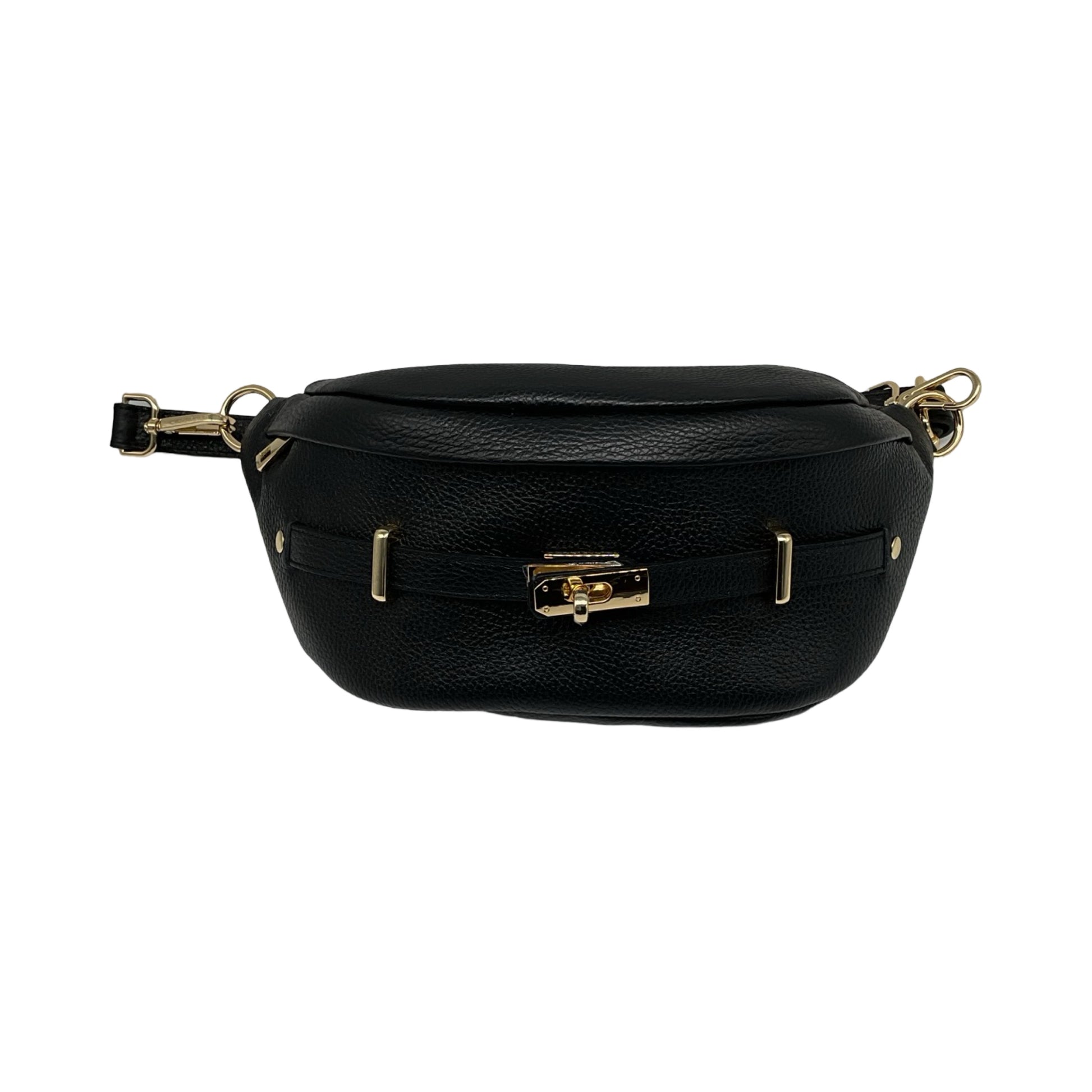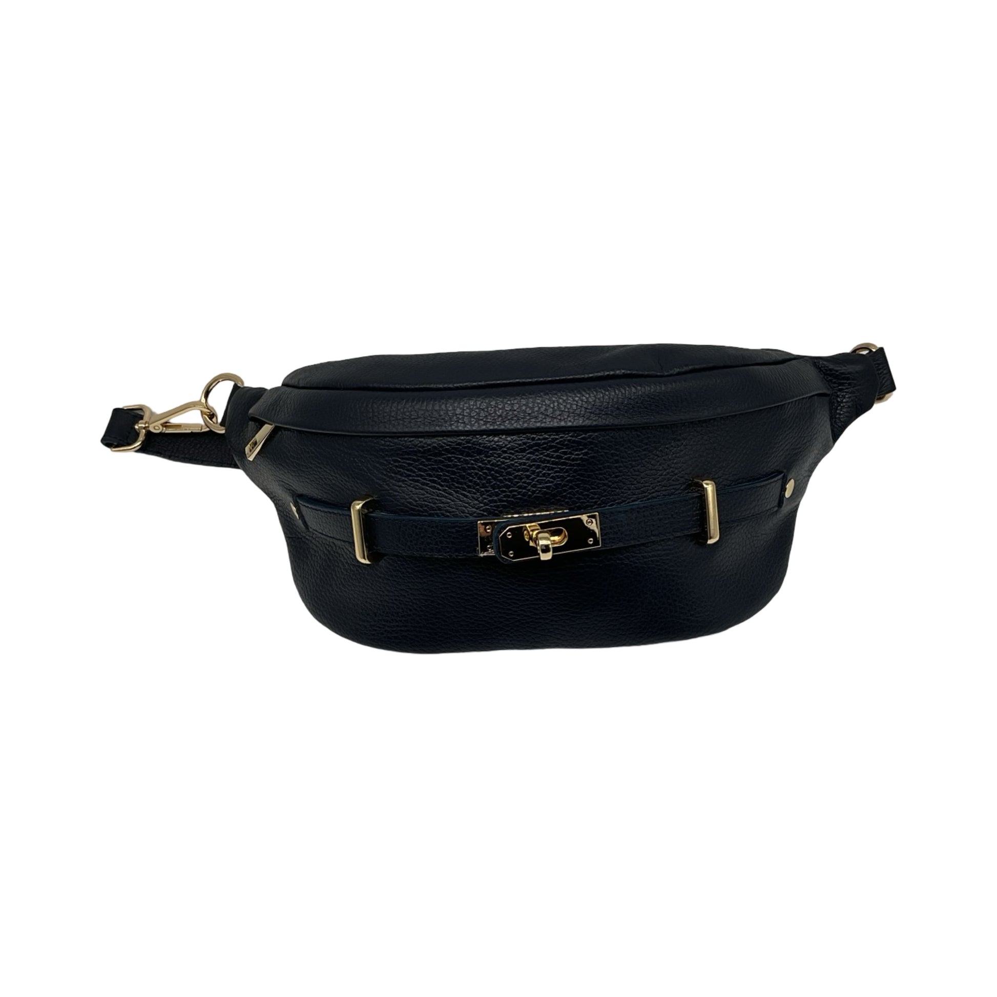 Grand sac banane en cuir grainé, élégant et spacieux, avec boucle métallique. Fabrication artisanale italienne, alliant style et praticité.