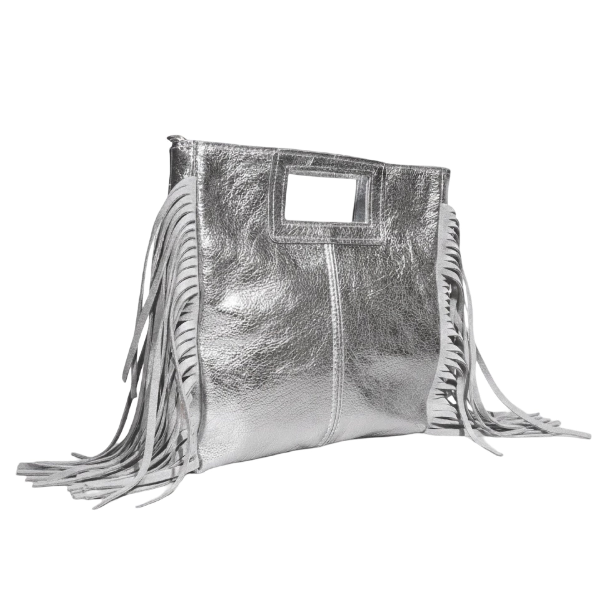 The Marion bag, in iridescent leather and made in Italy, offers the versatility of being carried in the hand or across the body. With its elegant design and Italian craftsmanship, it embodies luxury and timeless style.
