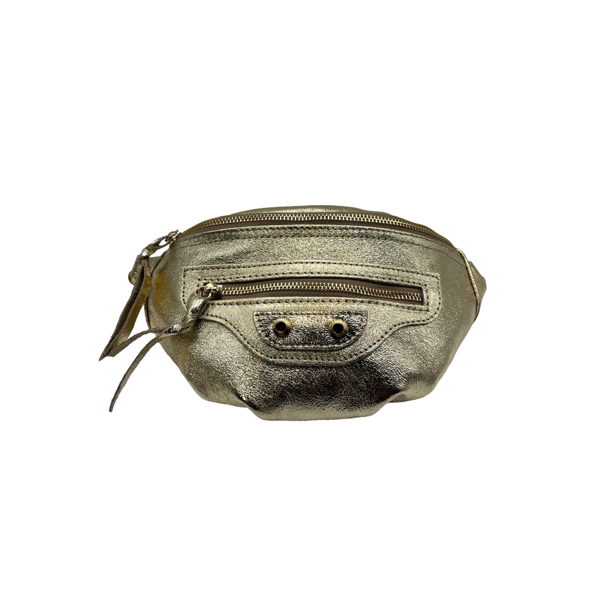 Sac banane en cuir irisé, modèle **Loulou**, fabriqué en Italie. Compact et élégant, il allie praticité et style avec son design brillant et ses finitions soignées. Parfait pour rehausser vos tenues avec une touche de glamour.
