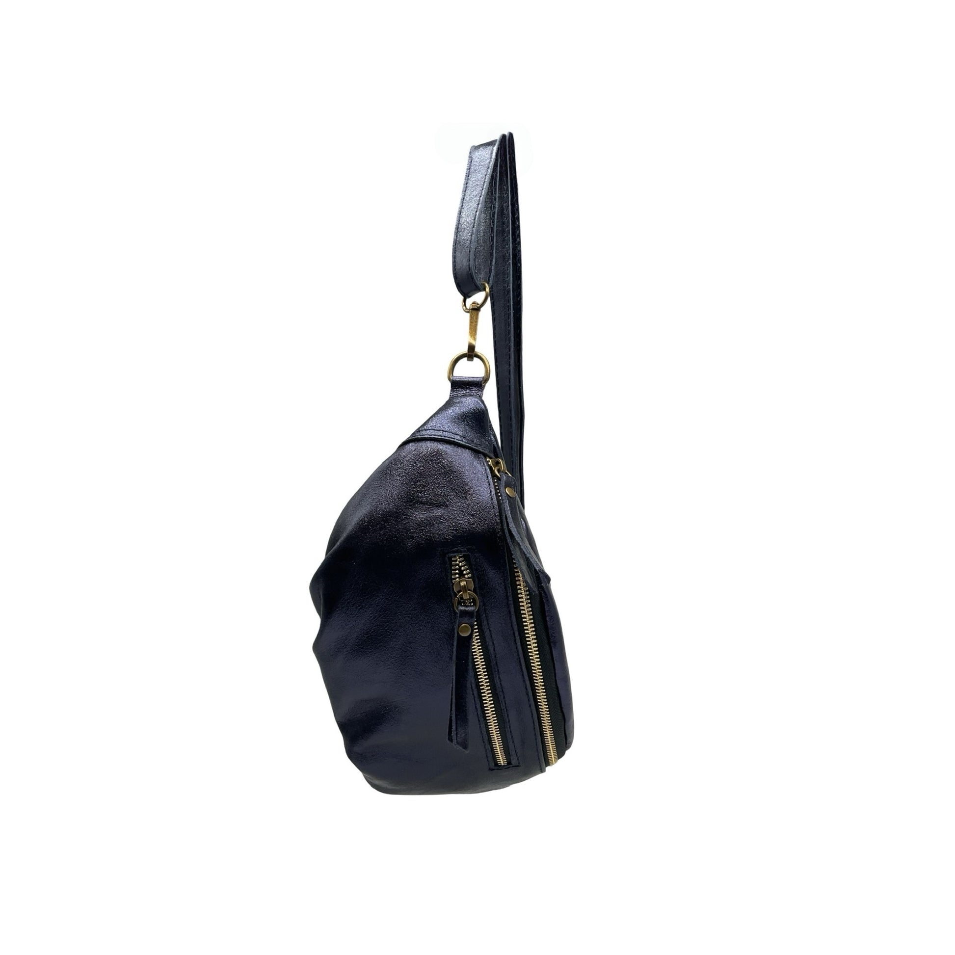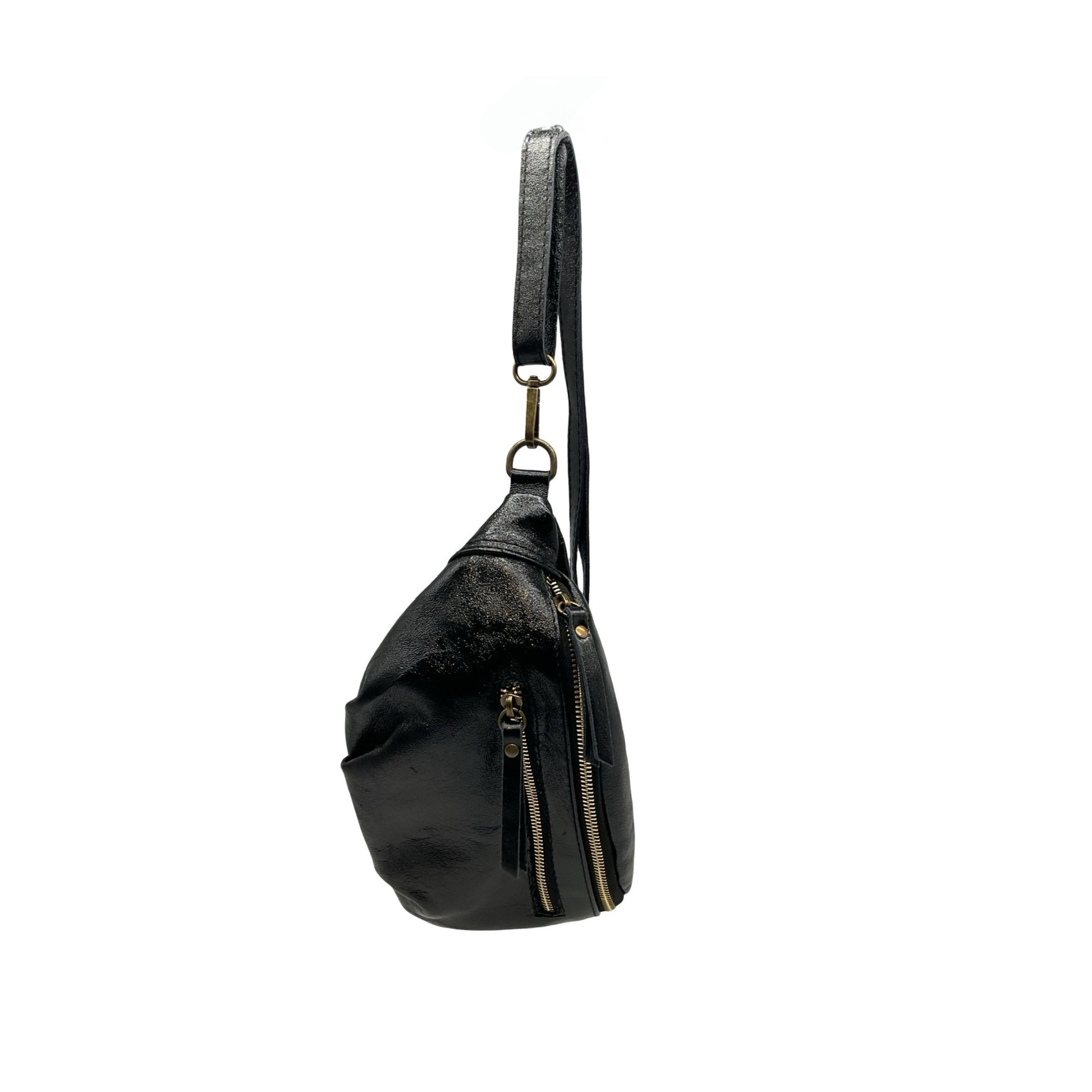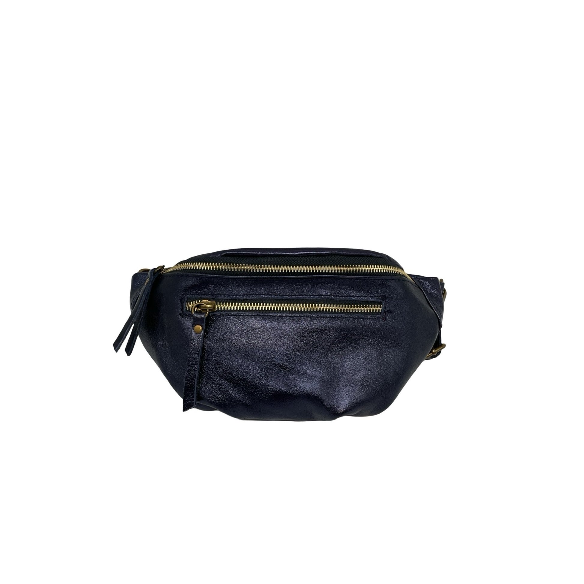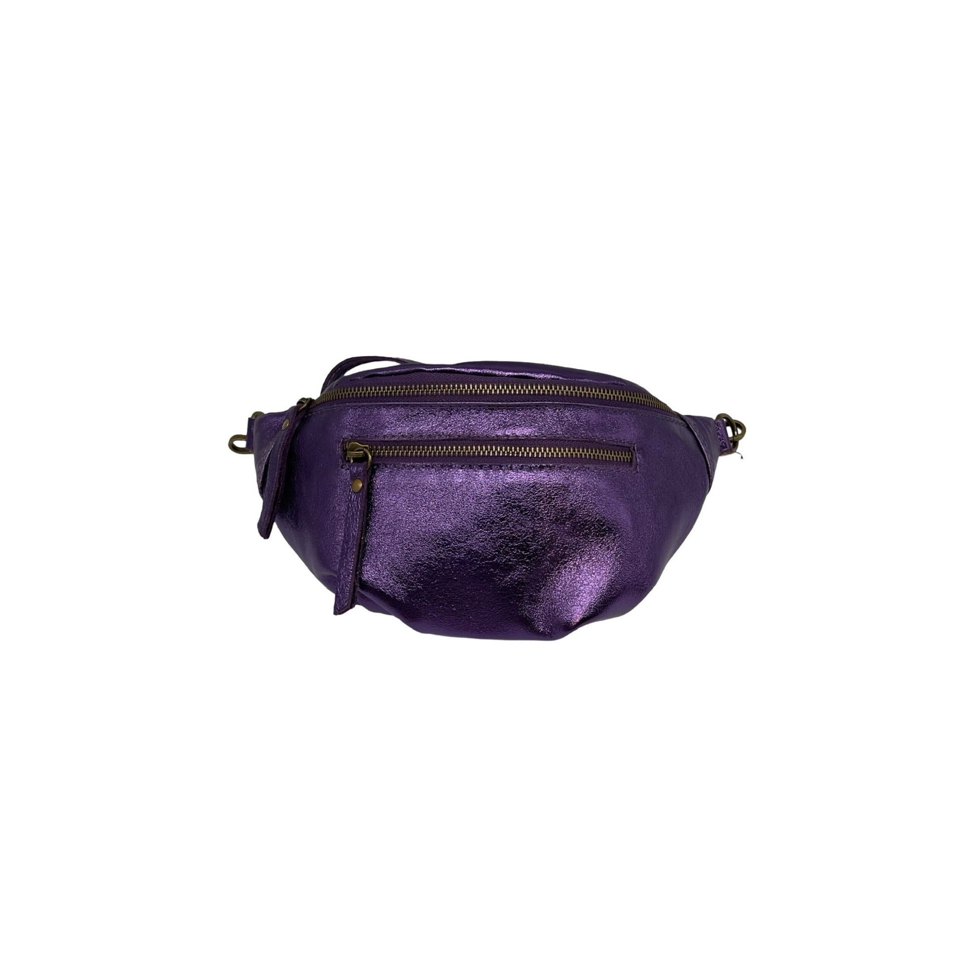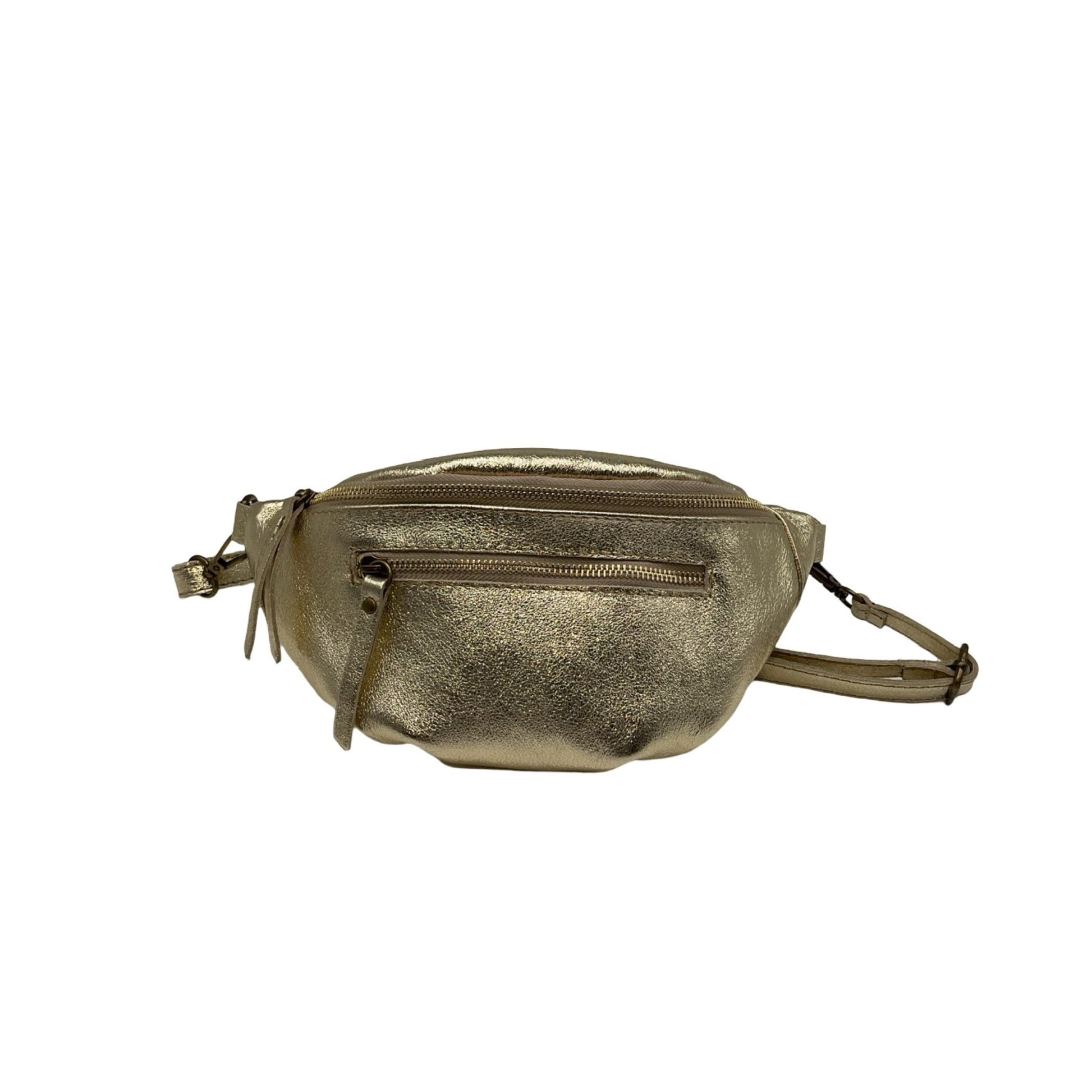 Sac banane en cuir de vachette irisé, double fermeture , Fabriqué avec soin en Italie, ce sac allie style et fonctionnalité. La finition métallique dore ajoute une touche sophistiquée, parfaite pour compléter votre look avec une note de glamour et d’élégance. Idéal pour garder vos essentiels à portée de main avec style.