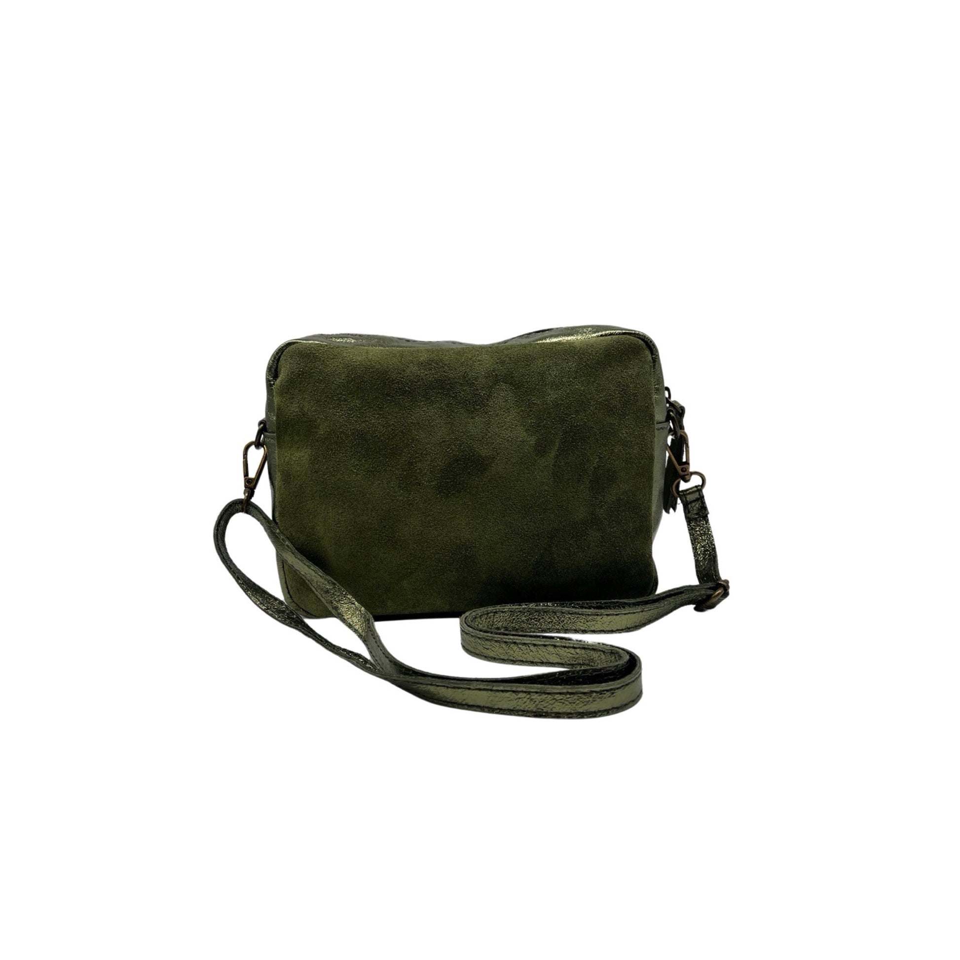Le sac bandoulière Nuria en cuir irisé, fabriqué en Italie, est agrémenté d'une poche imprimée léopard sur le devant. Ce détail ajoute une touche audacieuse et tendance à l'élégance et à la qualité artisanale italienne de cet accessoire. |