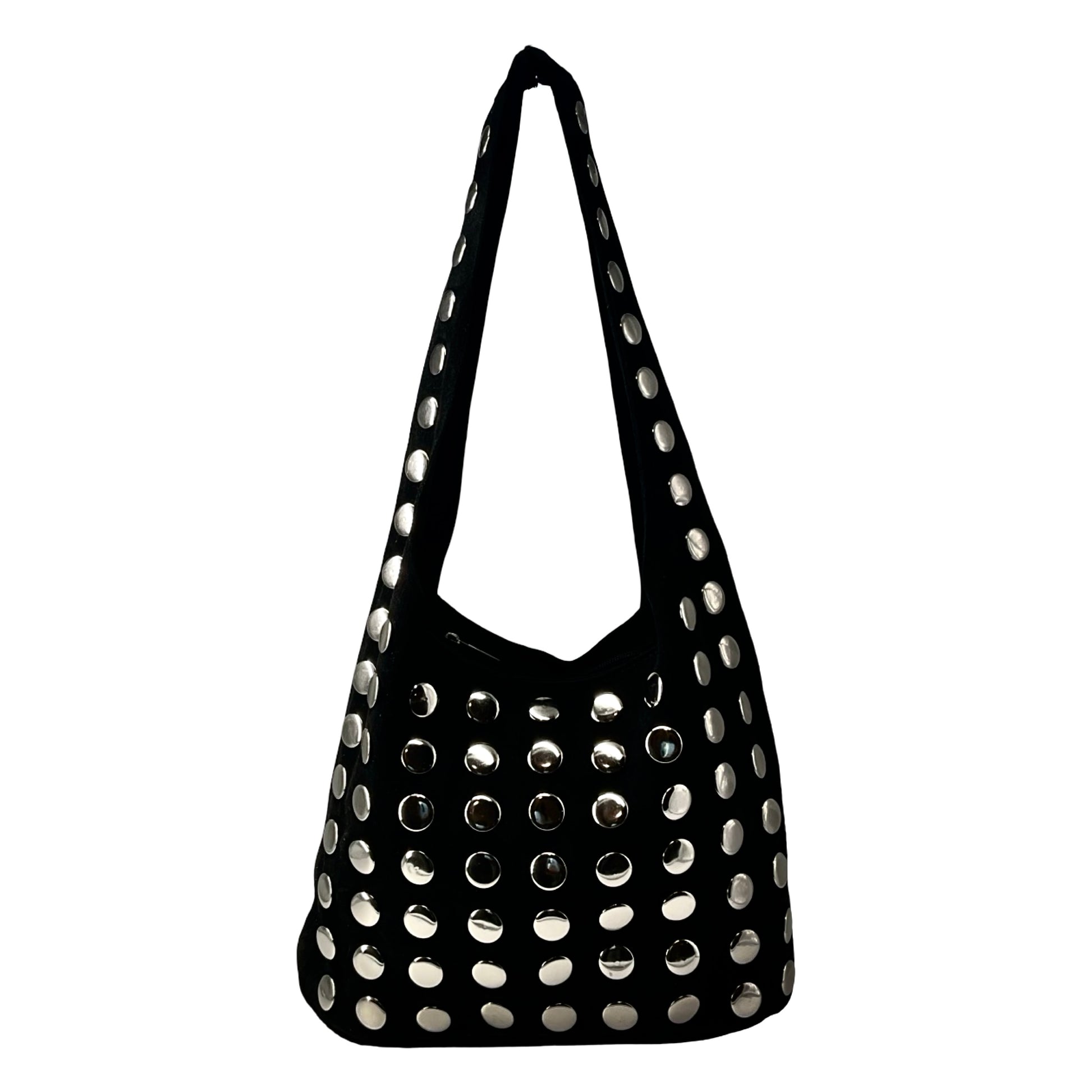 Affirmez votre style rock-chic avec le Sac clouté "Elodie". Ce sac emblématique associe la douceur du suéde et ses multiples œillets métalliques argentés. C'est l'accessoire parfait pour dynamiser n'importe quelle tenue.