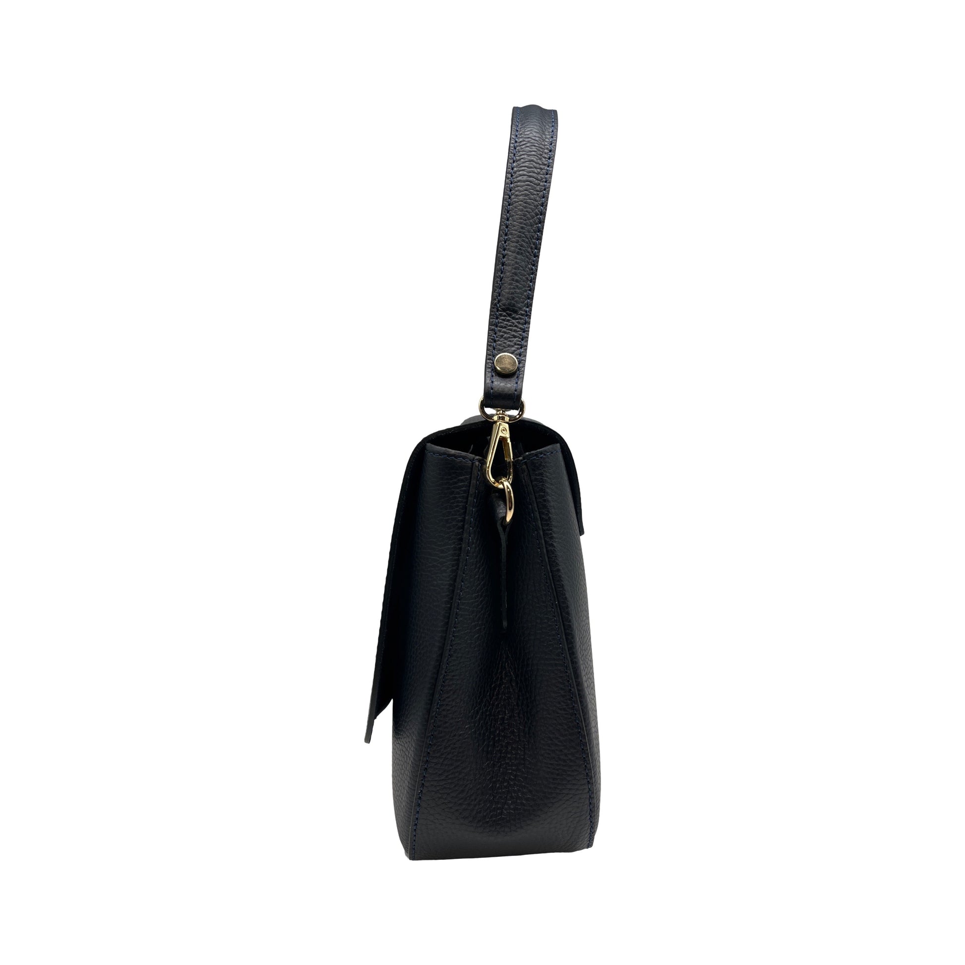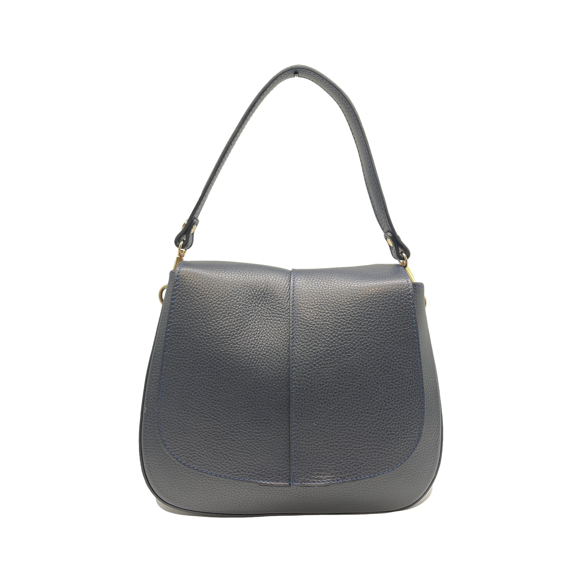 Daniela flap bag in grained cowhide, reflecting Italian craftsmanship. Two spacious compartments, equipped with two shoulder straps, one short and one long. Elegant and functional design, ideal for all occasions.