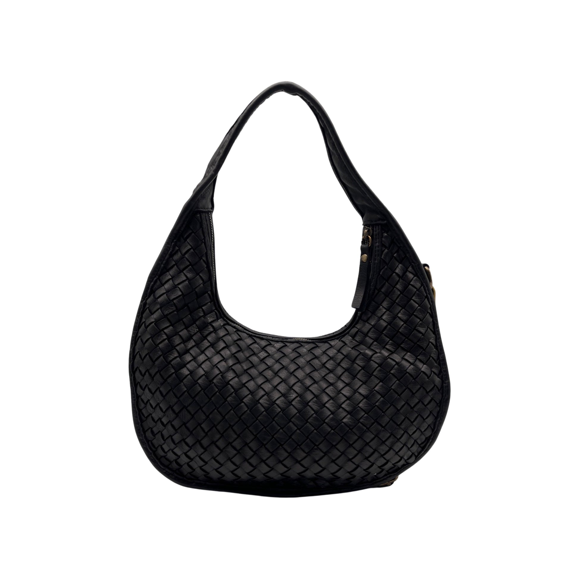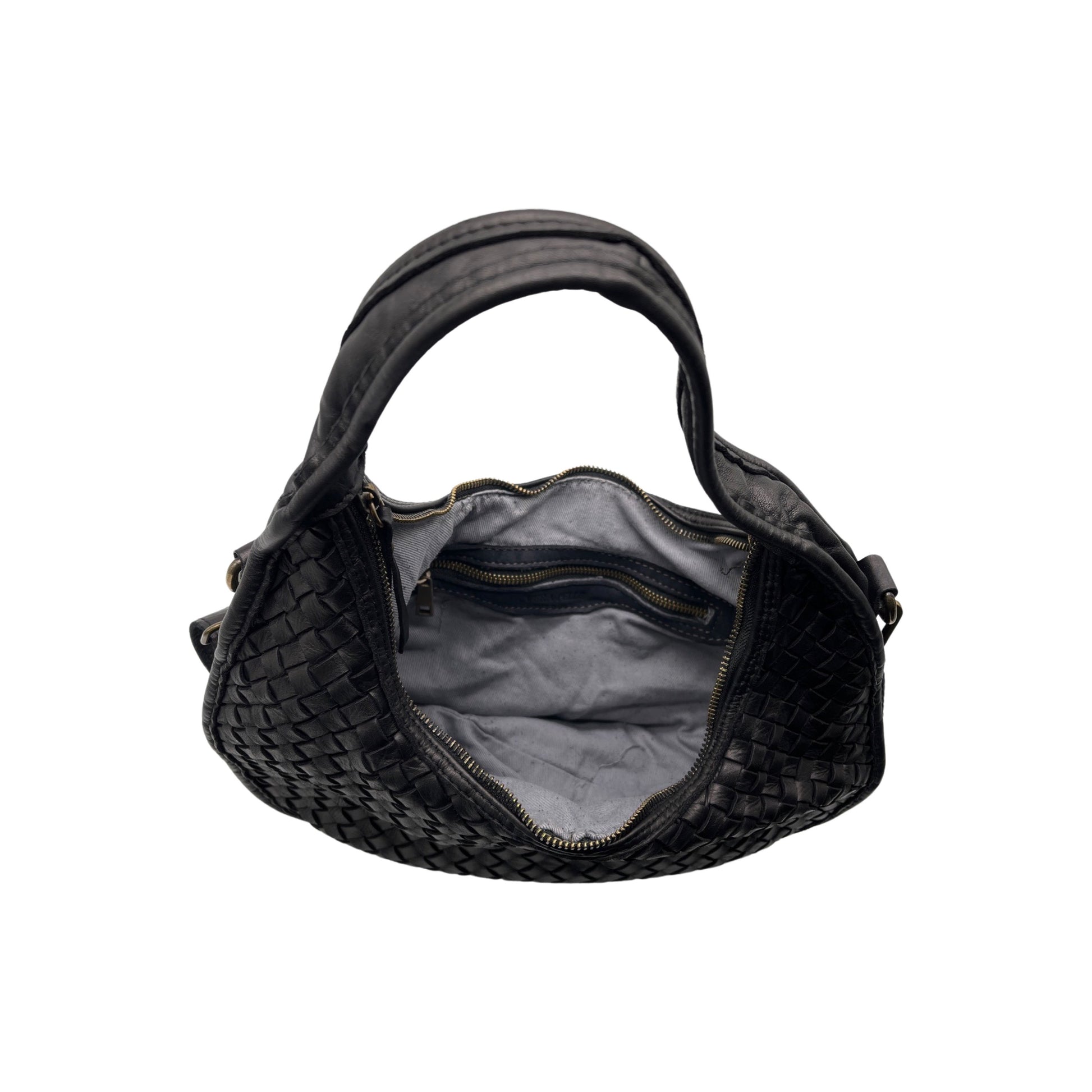 Adele bag in washed cowhide leather, handmade in Italy. Natural and vintage texture, sturdy and elegant braided, reflecting fine craftsmanship.