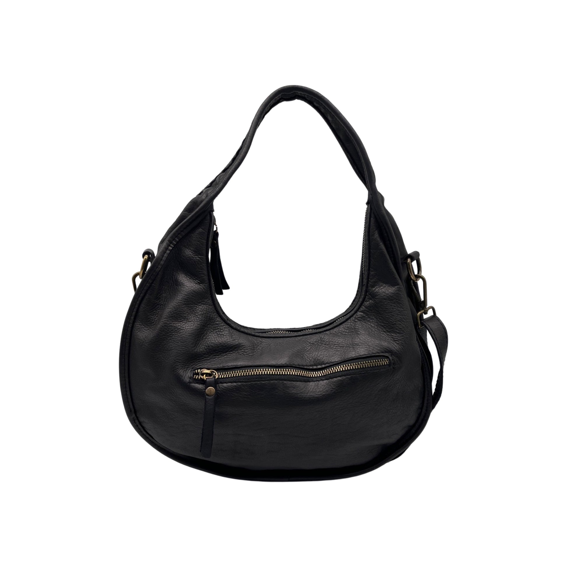 BLACK ADELE WASHED LEATHER SHOULDER BAG