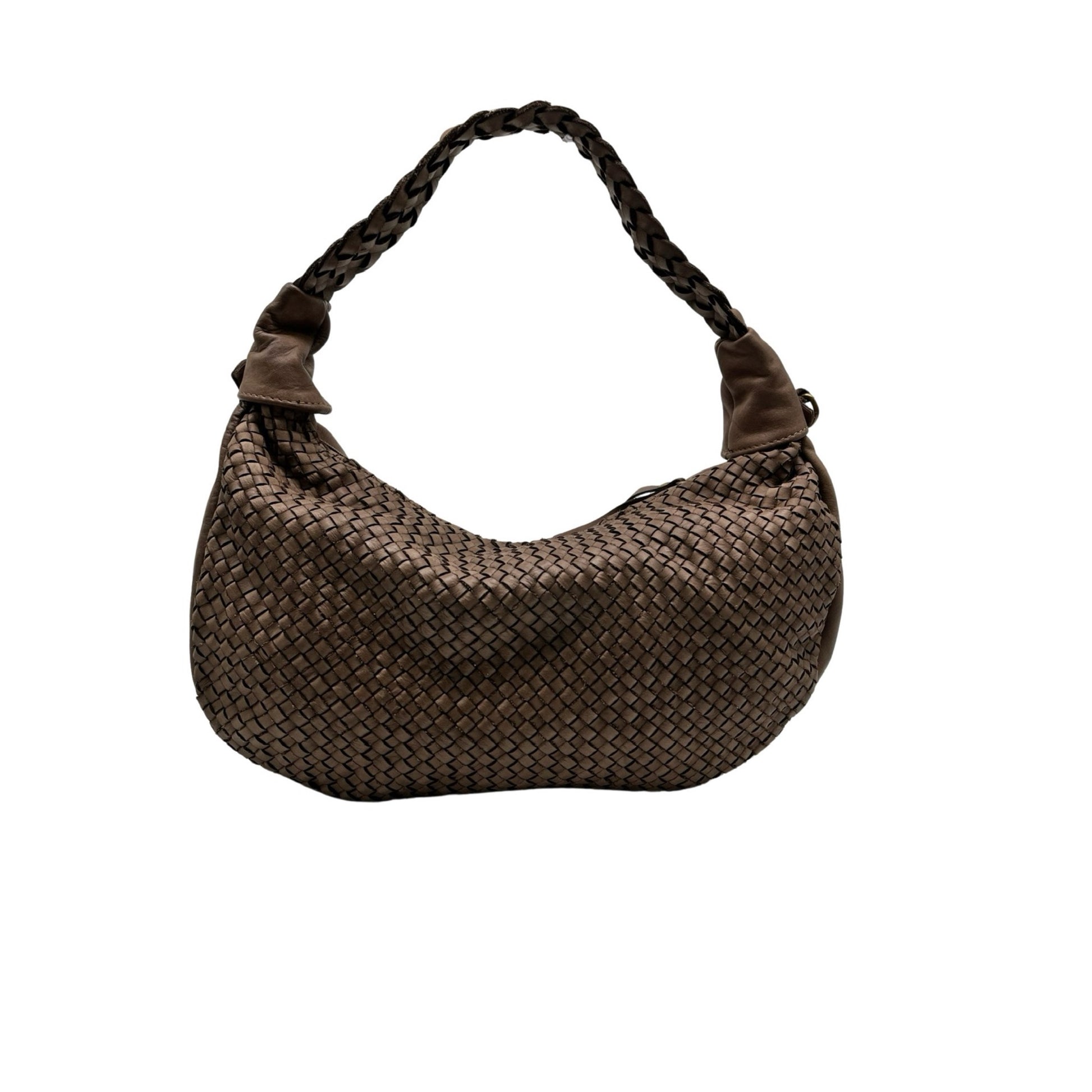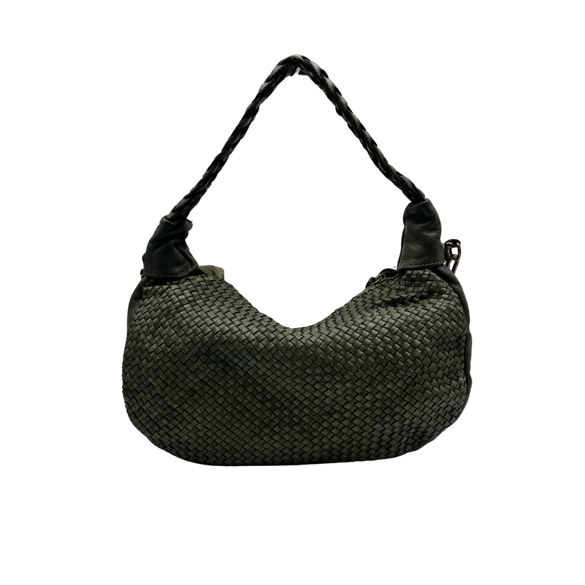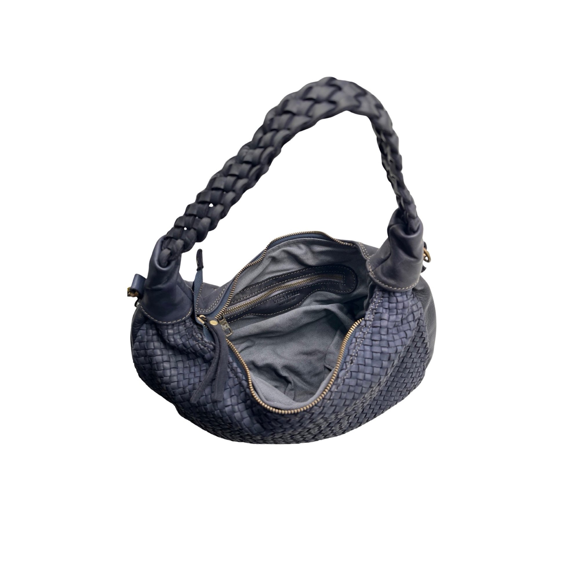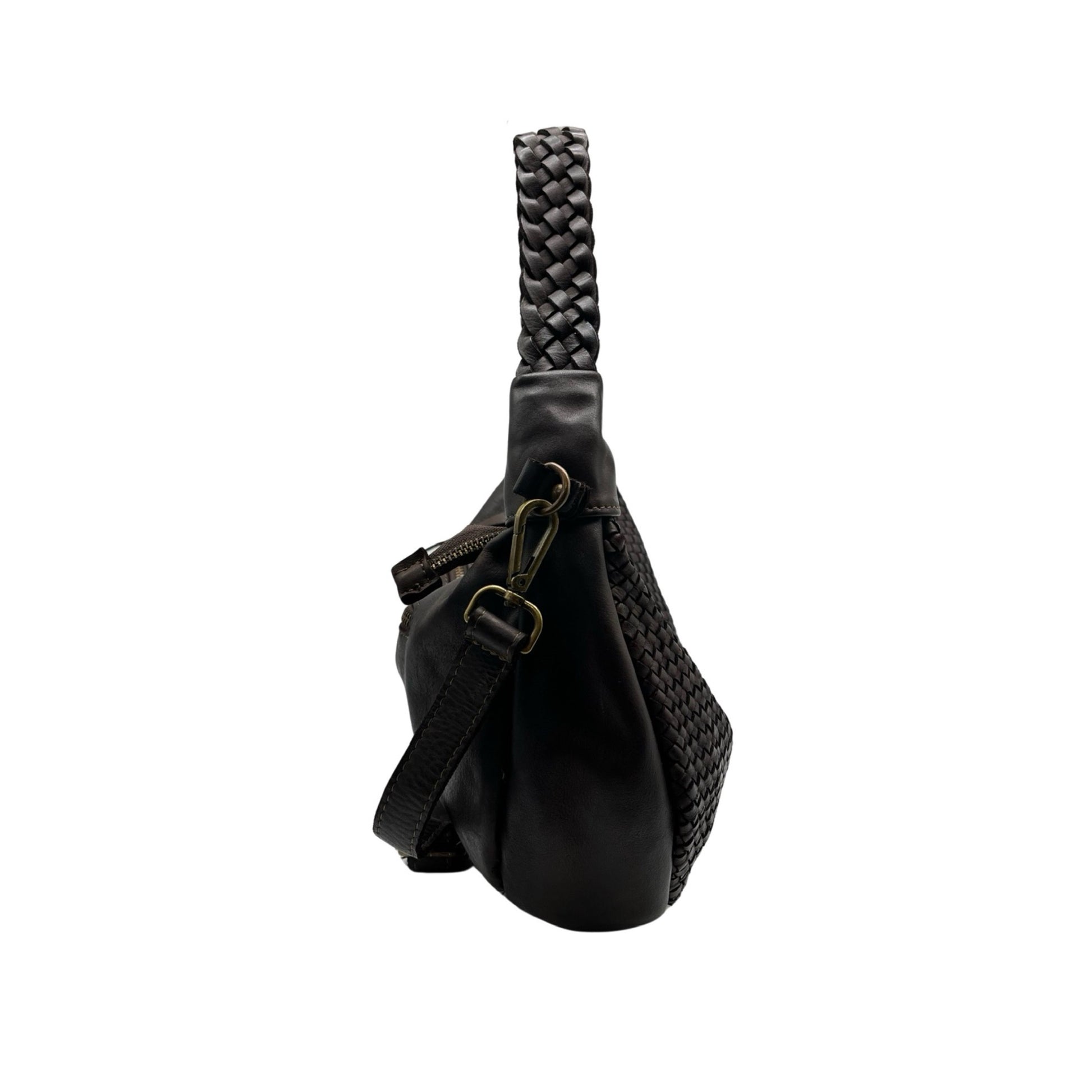 The Alice bag in washed cowhide leather, measuring 35 cm x 21 cm, is made in Italy. With its braiding details on the front and its also braided shoulder strap, it can be worn on the shoulder or across the body. Its vintage style adds a touch of timeless charm to your outfit.