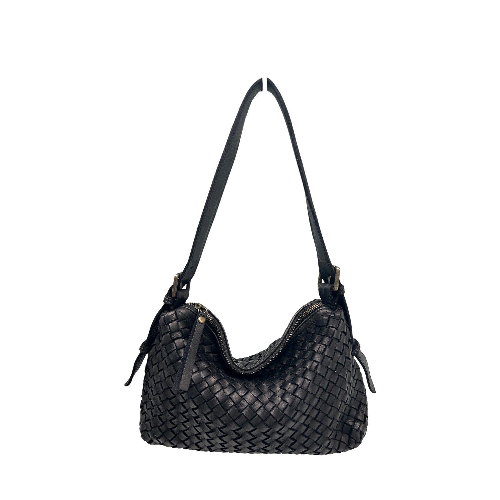 BLACK IRIS WASHED LEATHER SHOULDER BAG