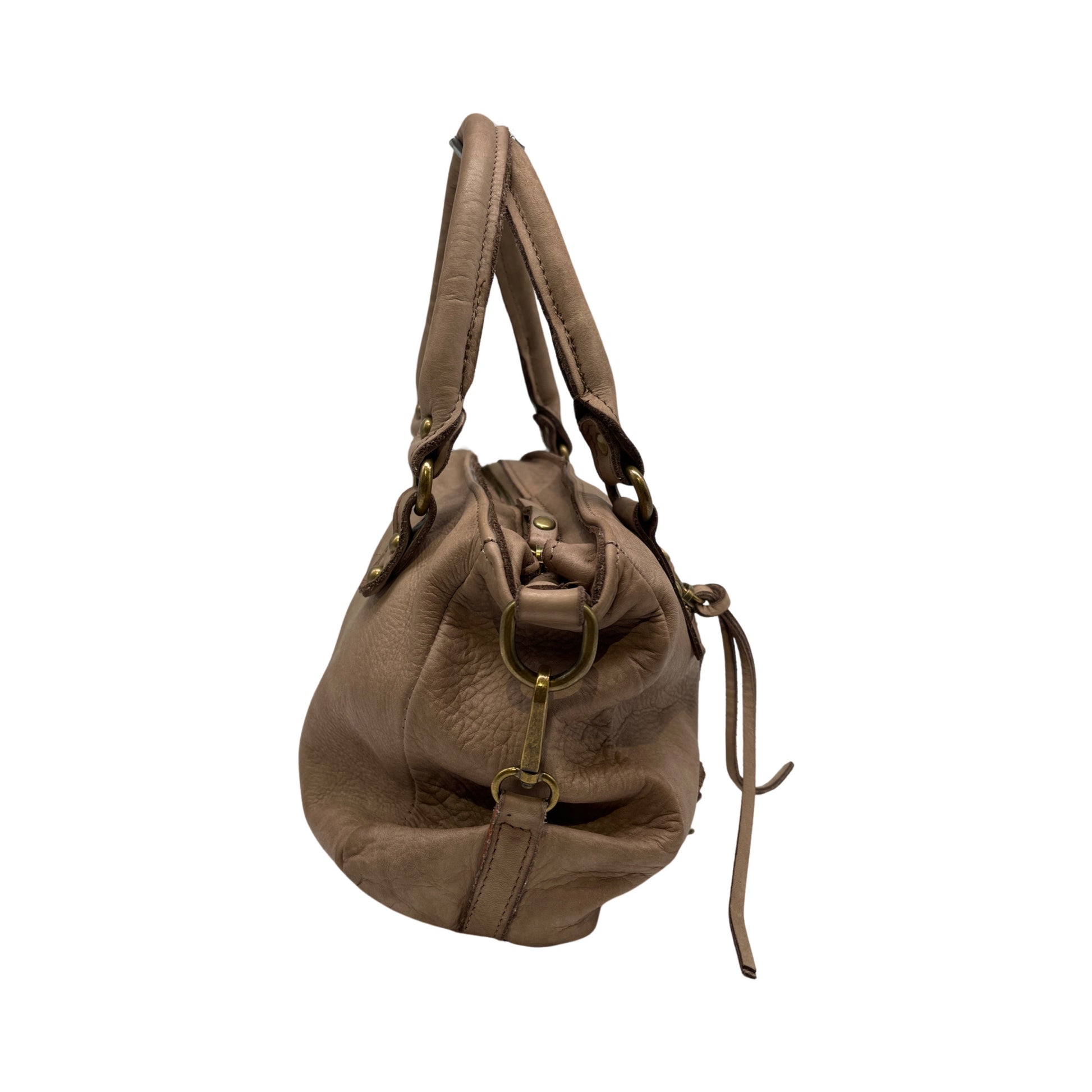 LUCIE TAUPE WASHED LEATHER SHOULDER BAG