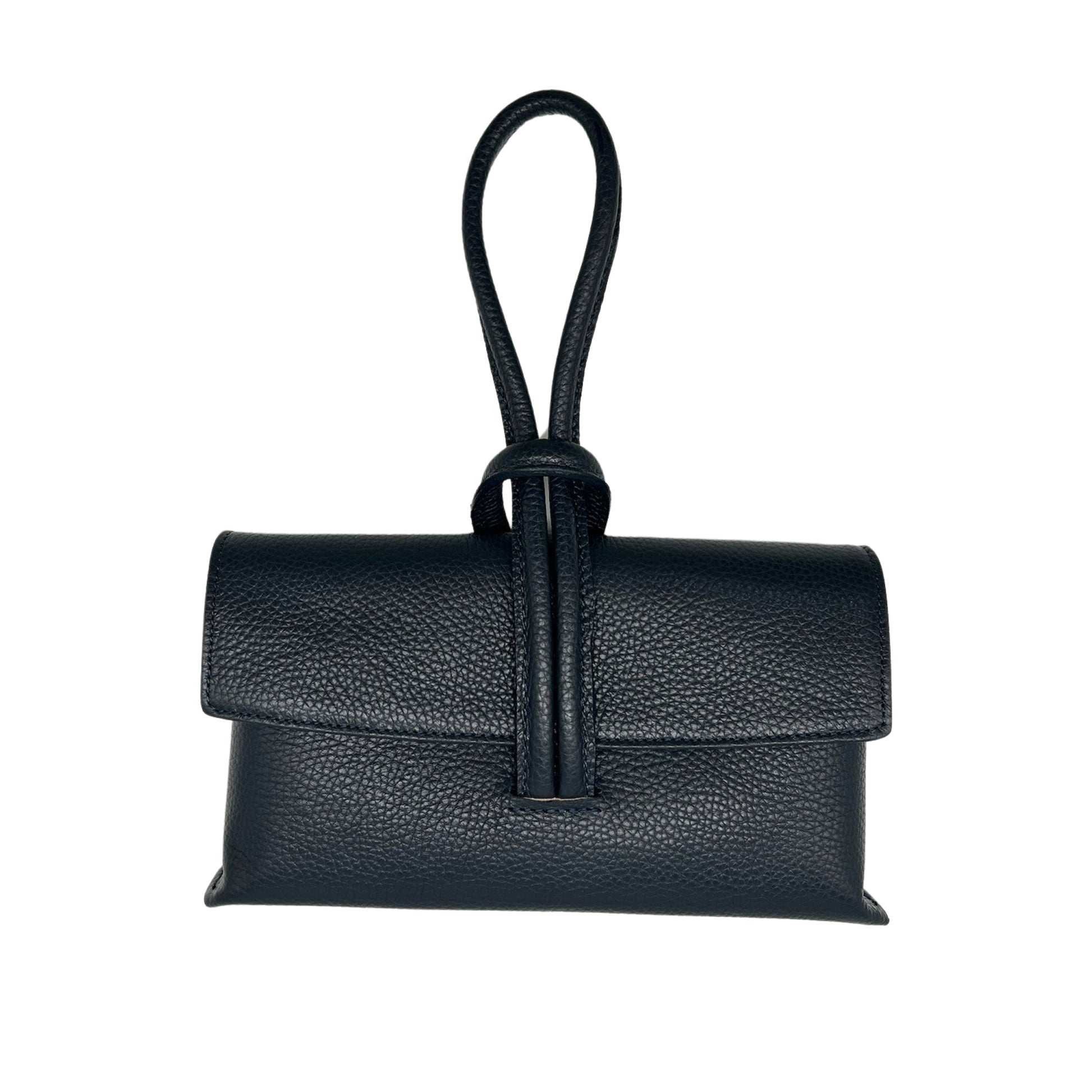A stylish and complimented leather clutch bag, designed to be carried in the hand or on the shoulder. Made in Italy, it features an interior closed pocket for practical organization.