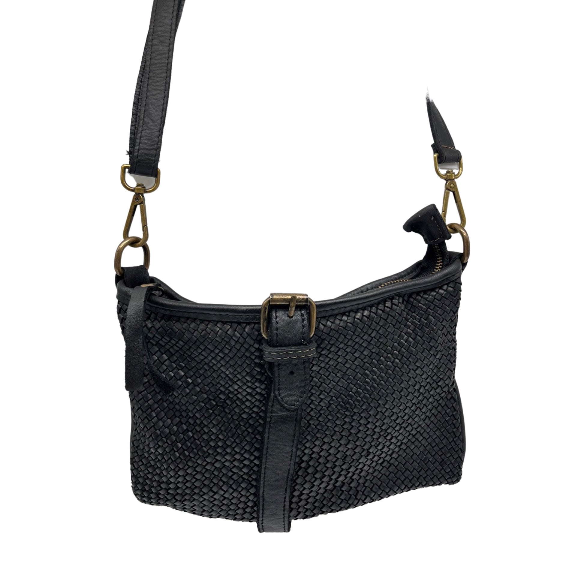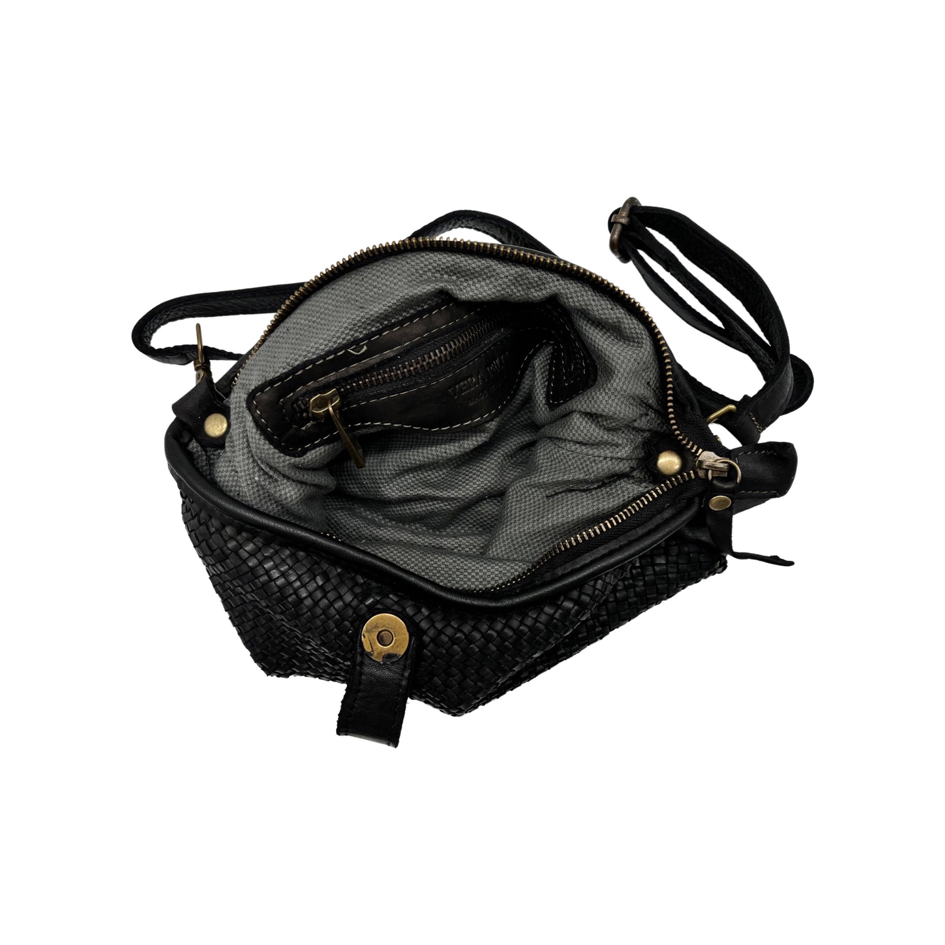 INES BLACK WASHED LEATHER POUCH BAG Design in Paris