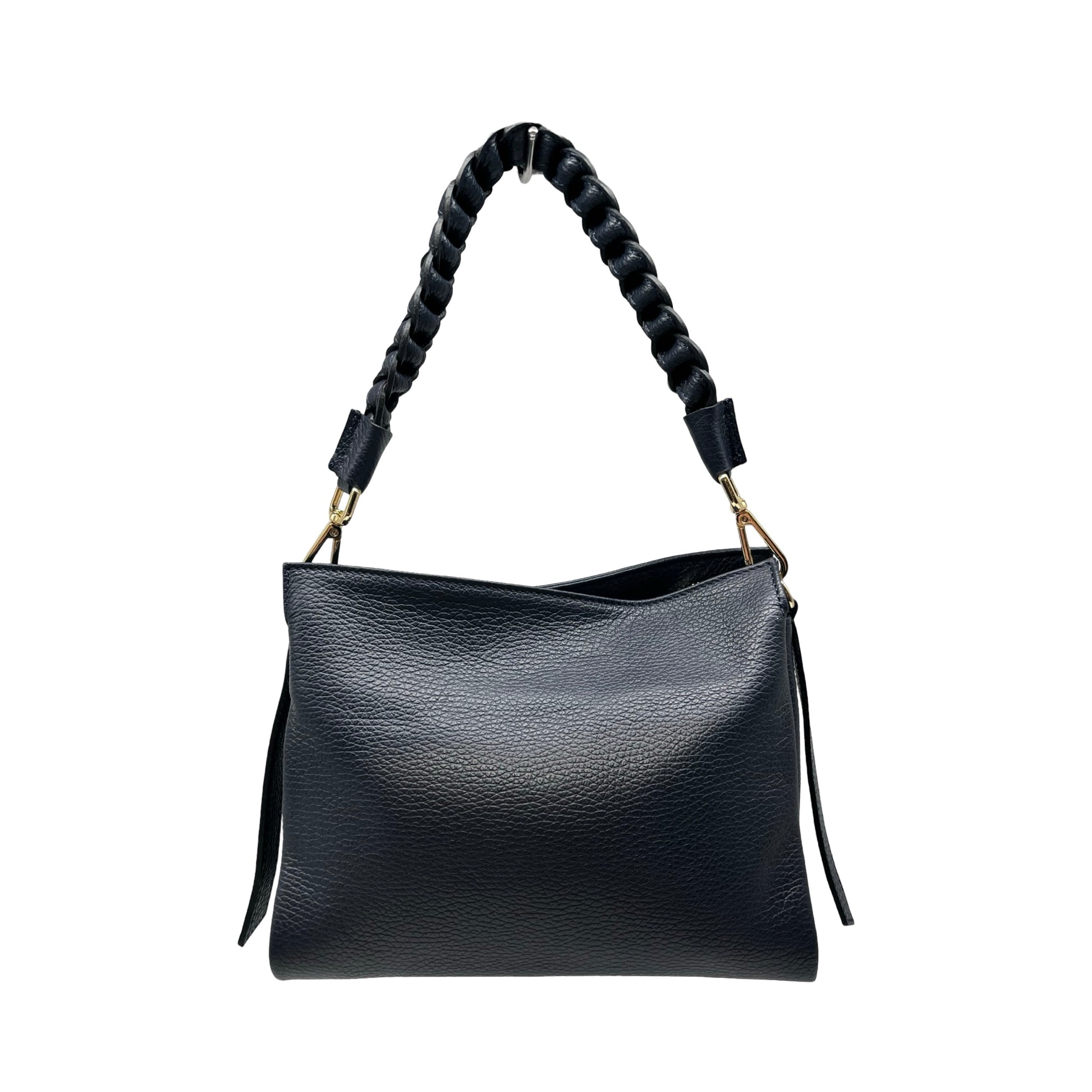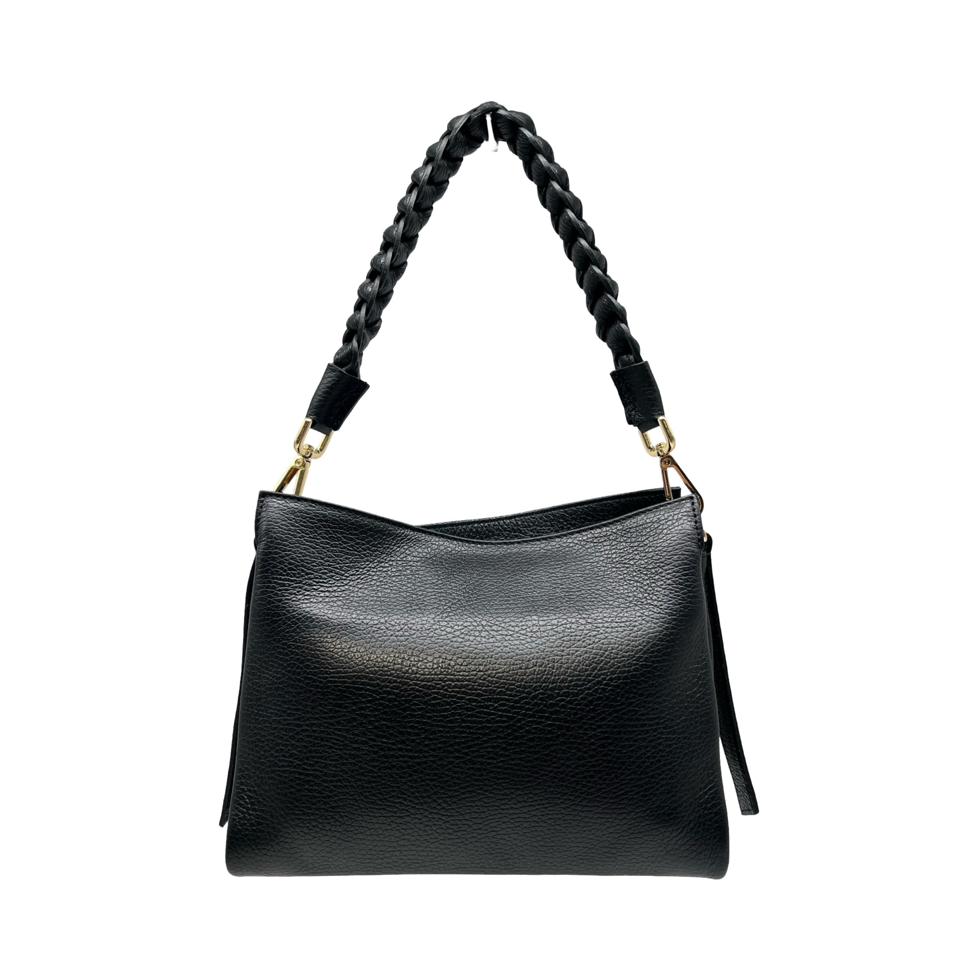 - Le sac Mini Nathalie, en cuir de vachette grainé made in Italy, présente une séparation intérieure à deux poches pour une organisation optimale. Sa bandoulière tressée ajoute une touche de style et de fonctionnalité à ce sac porte-épaule.