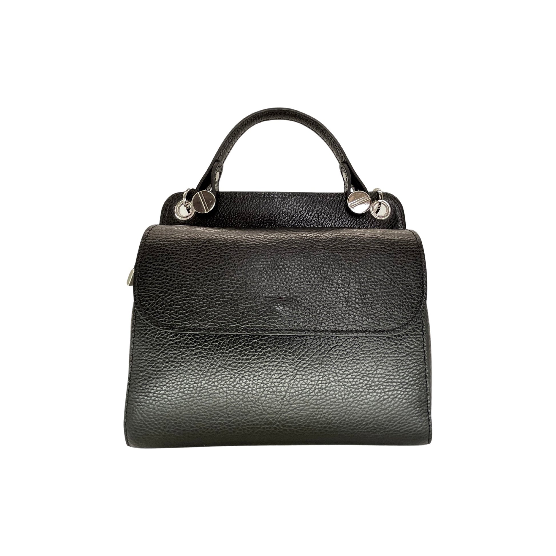 The Lauray grained cowhide leather handbag, made in Italy, offers style and functionality. Its double openings in the front and back allow convenient access, and it also includes two interior pockets for optimal organization.