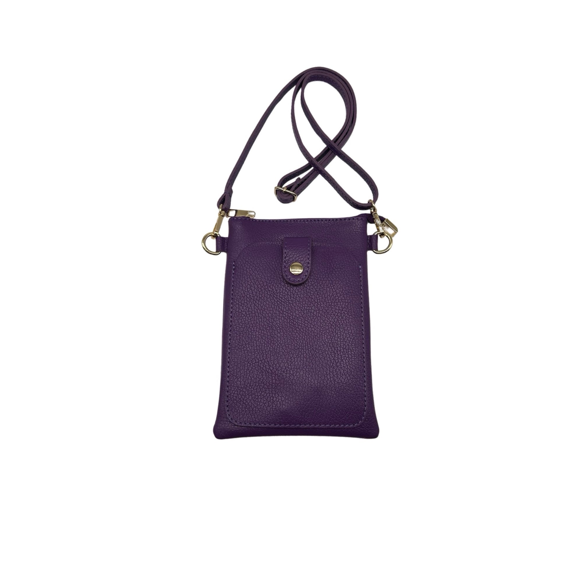 Élégant sac téléphone en cuir de vachette grainé, conçu en Italie. Pratique avec sa bandoulière, il allie sophistication et fonctionnalité. La qualité artisanale et le grain du cuir ajoutent une touche distinctive.