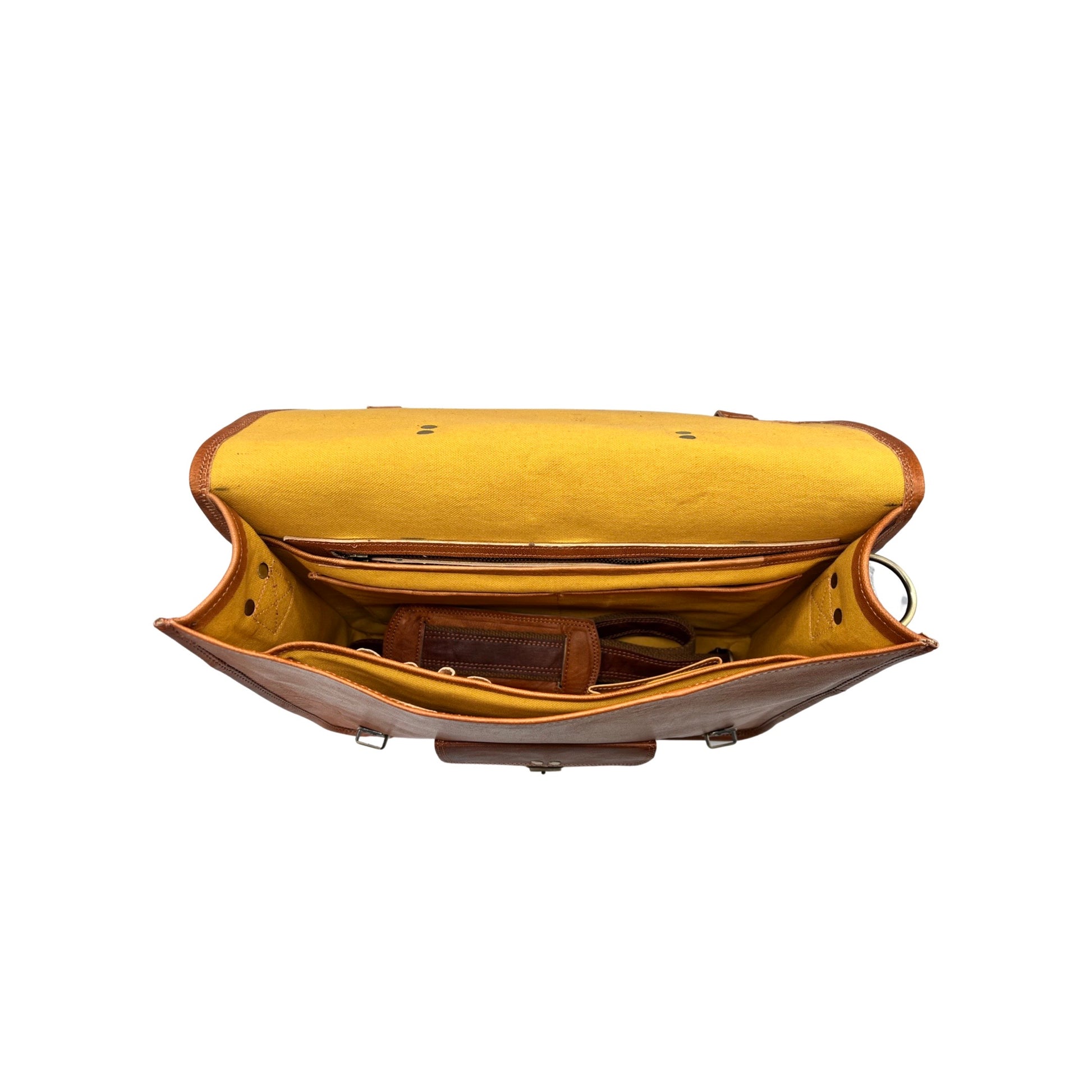 Leather briefcase with cotton lining 38 cm camel Design in Paris