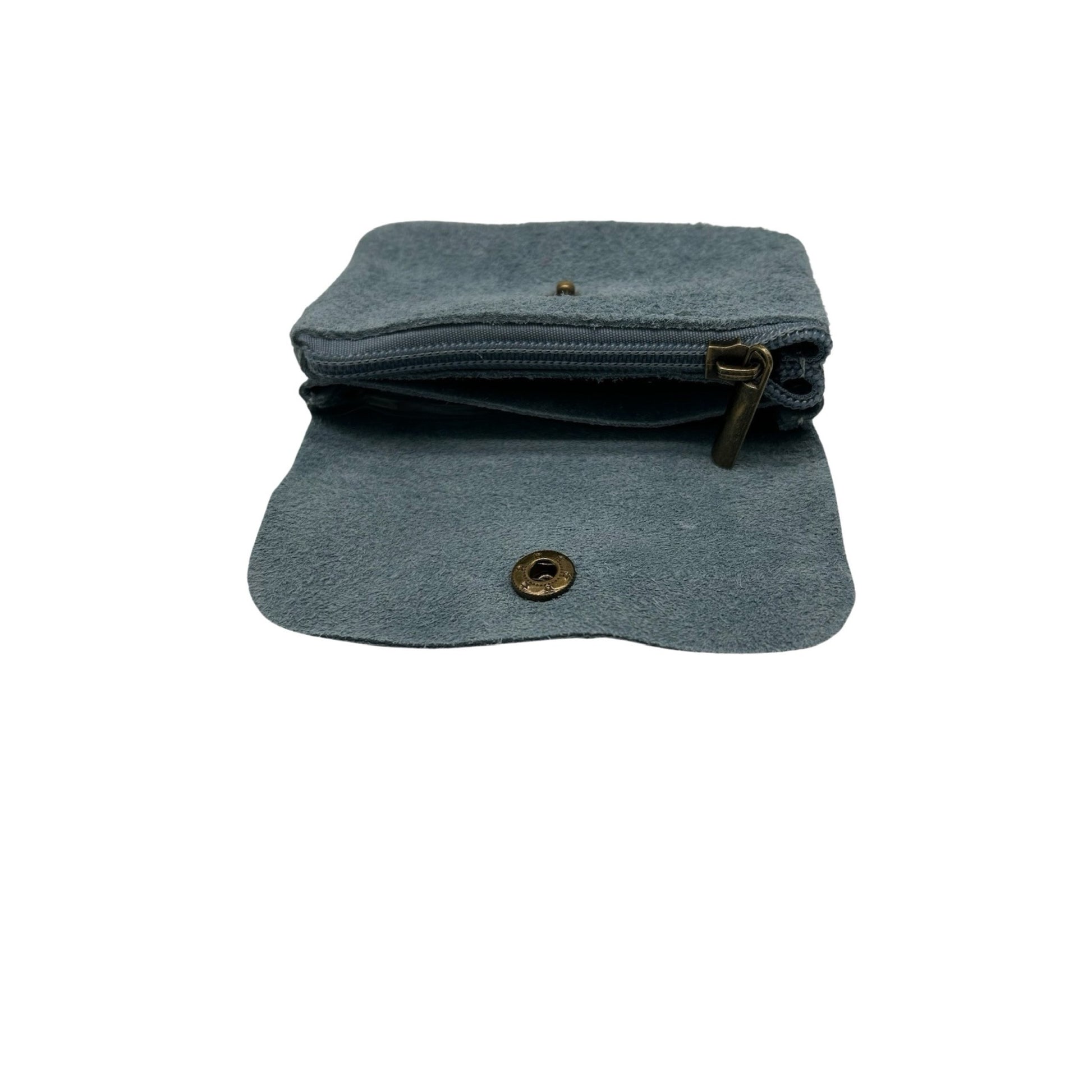 Porte monnaie élégant pour femme en cuir de vachette suede de 11cm, fabriqué en Italie. Un accessoire de qualité, alliant style et durabilité, idéal pour organiser vos cartes et votre monnaie.