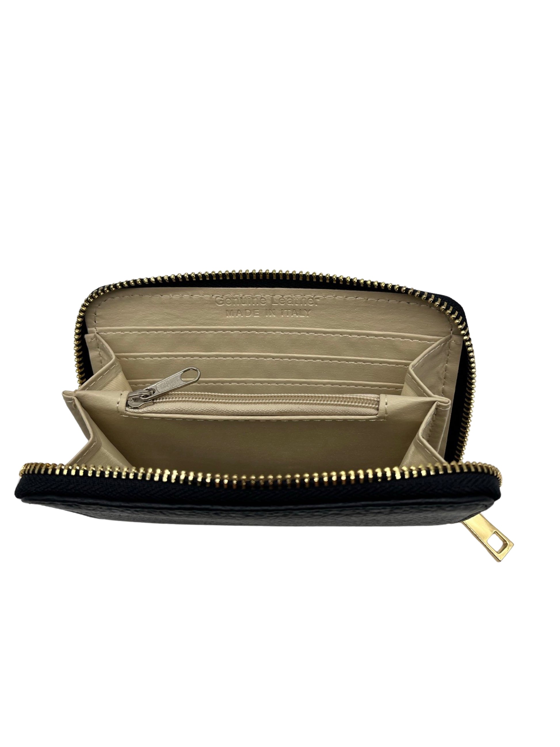 Porte-feuille élégant pour femme en cuir de vachette de 15 cm, fabriqué en Italie. Un accessoire de qualité, alliant style et durabilité, idéal pour organiser vos cartes et votre argent avec sophistication.