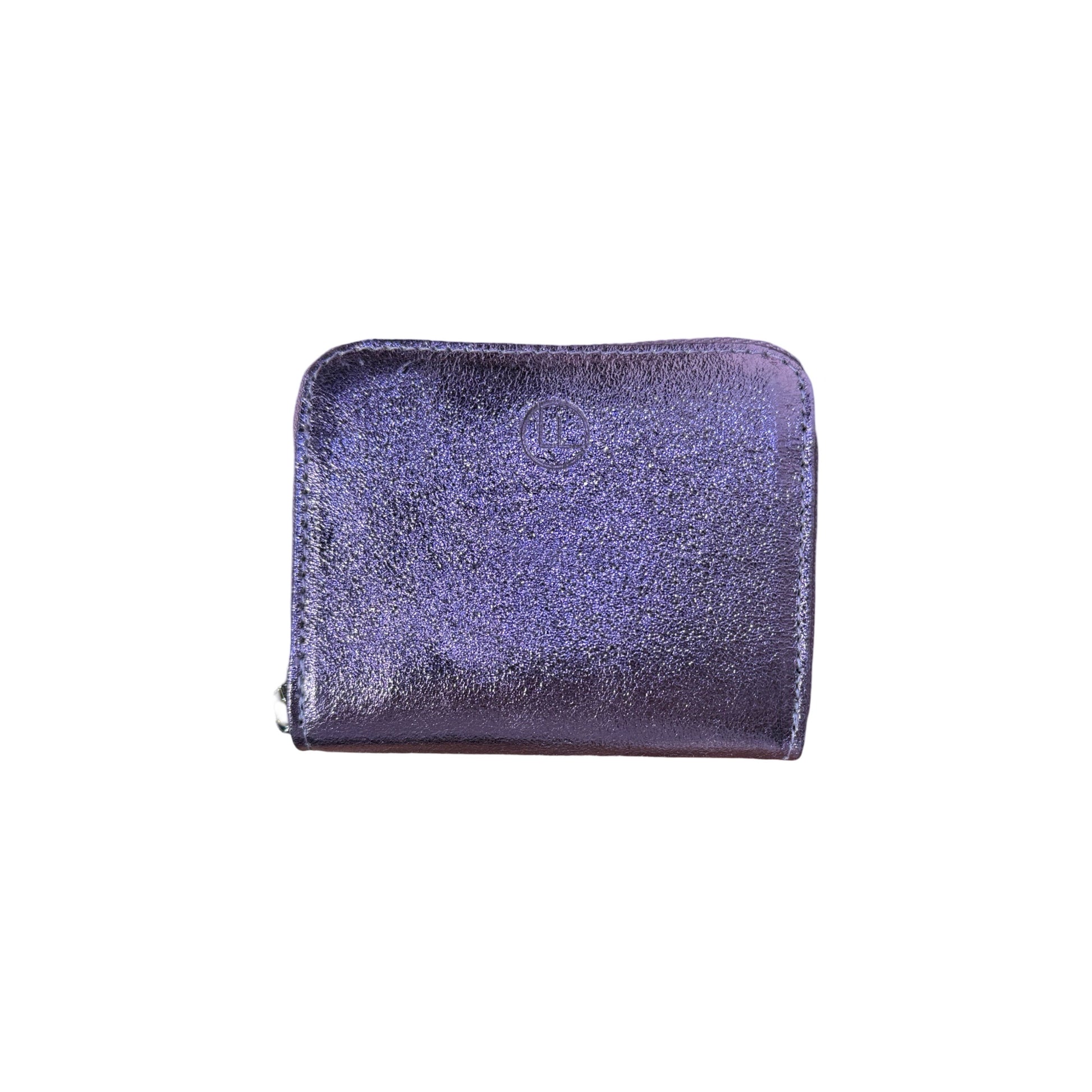 Portefeuille élégant pour femme en cuir de vachette irisé de 12 cm, fabriqué en Italie. Un accessoire de qualité, alliant style et durabilité, idéal pour organiser vos cartes et votre argent .