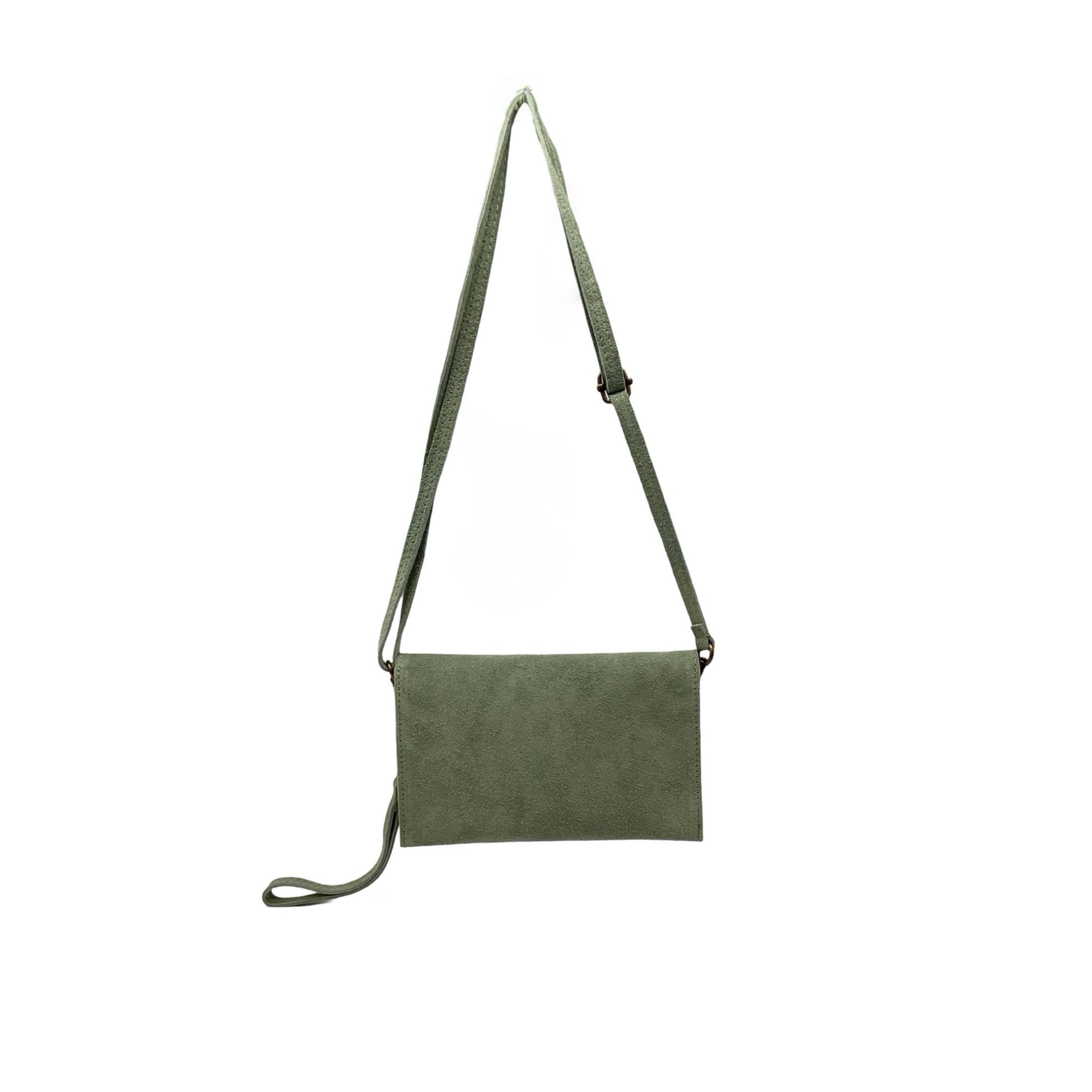 Pochette bandoulière élégant pour femme en cuir de vachette suède de 20 cm, fabriqué en Italie. Un accessoire de qualité, alliant style et durabilité, idéal pour organiser vos cartes et votre argent avec sophistication.