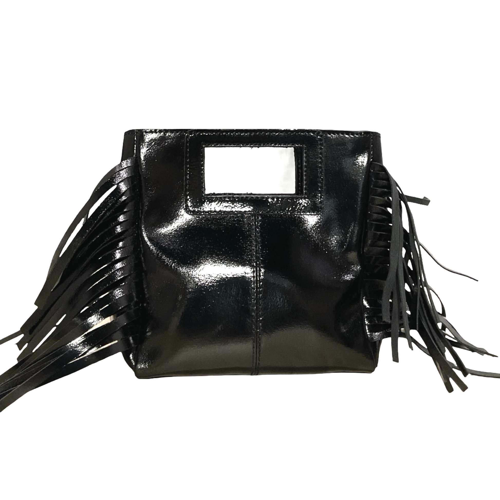 Cette pochette audacieuse est confectionnée dans un cuir métallisé et se distingue par ses franges glamour sur les côtés, injectant une dose de lumière et de mouvement à votre look de soirée. Dotée d'une poignée centrale pour la main et d'un format compact, elle est l'accessoire indispensable pour sublimer une tenue simple et garder vos essentiels à portée de main avec éclat.
