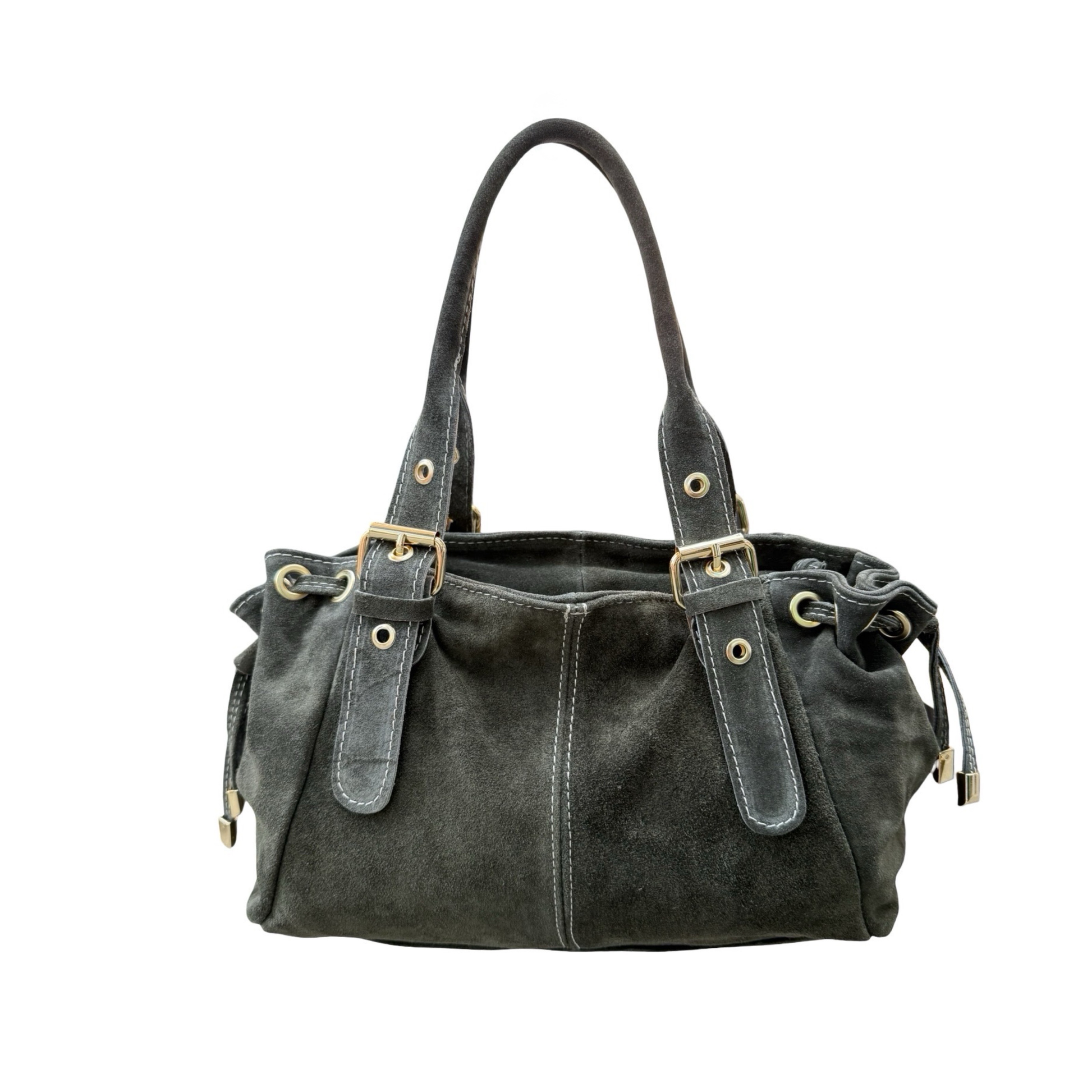 Un sac tendance en cuir suède italien, alliant minimalisme et élégance grâce à ses lacets ajustables pour un style unique.