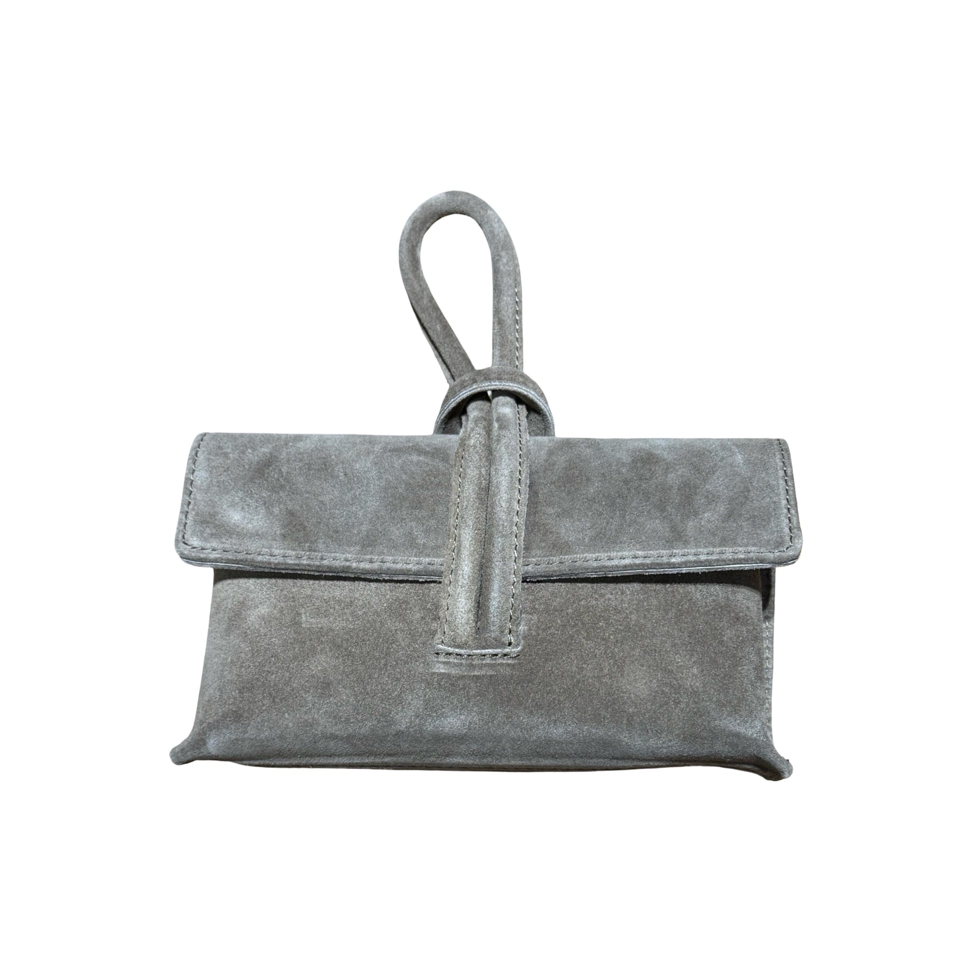Un sac pochette en cuir Suède élégant et félicité, conçu pour être porté à la main ou à l'épaule. Fabriqué en Italie, il comporte une poche intérieure fermée pour une organisation pratique.