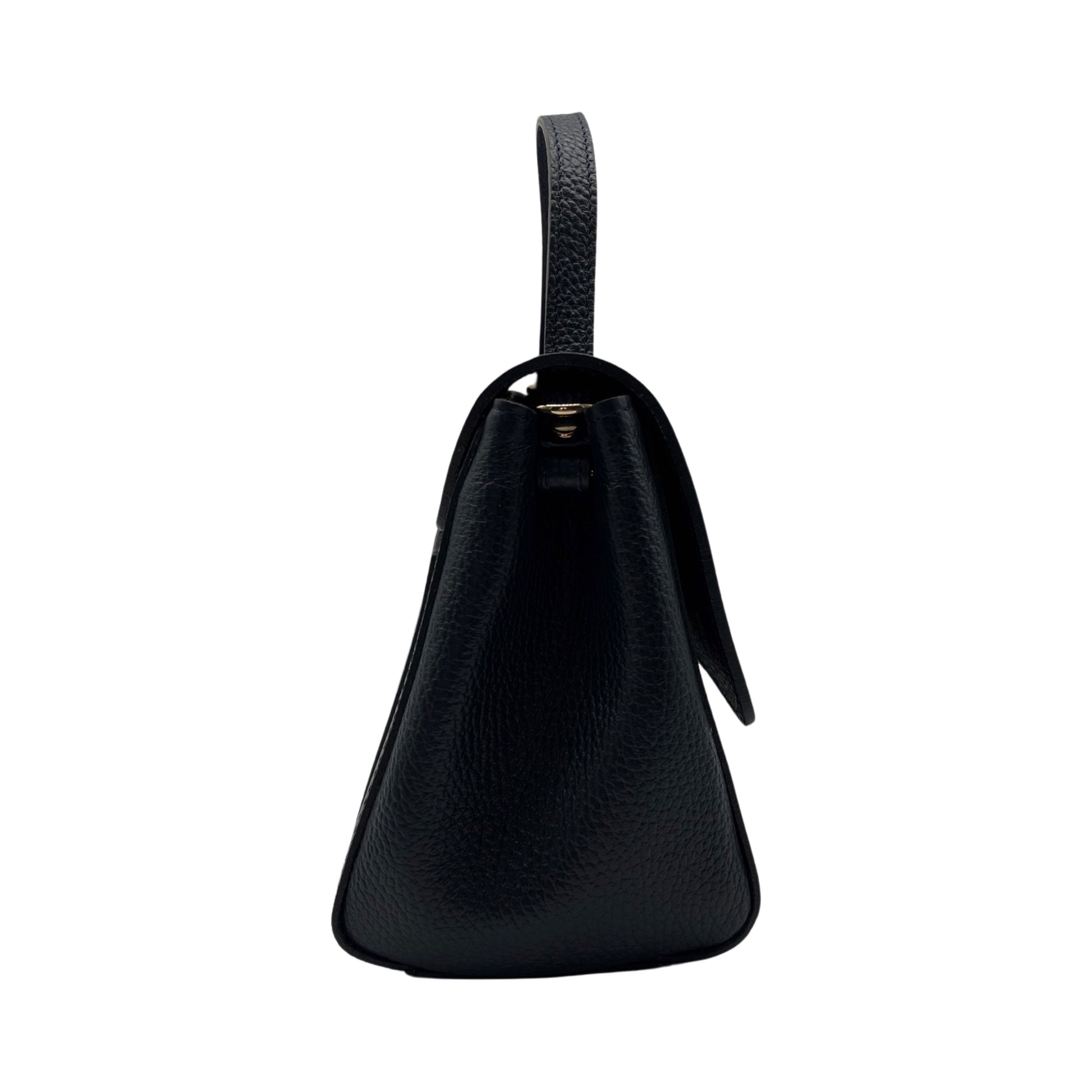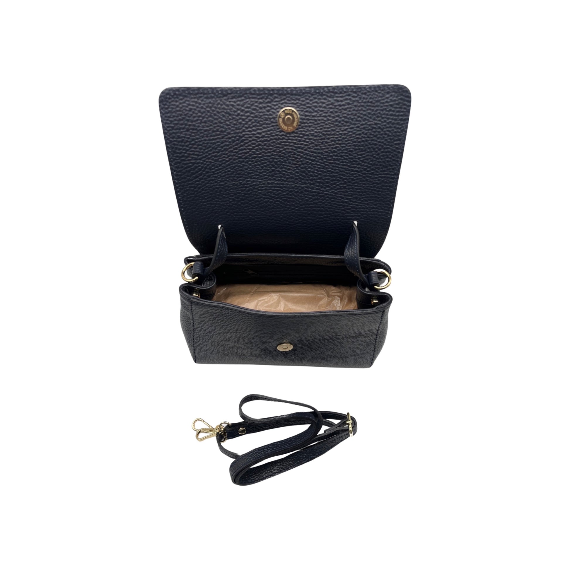 Un sac en cuir de vachette grainé, fabriqué en Italie, avec une poche extérieure et deux poches intérieures. Il peut être porté à la main ou en bandoulière. Élégance et fonctionnalité en un seul accessoire.